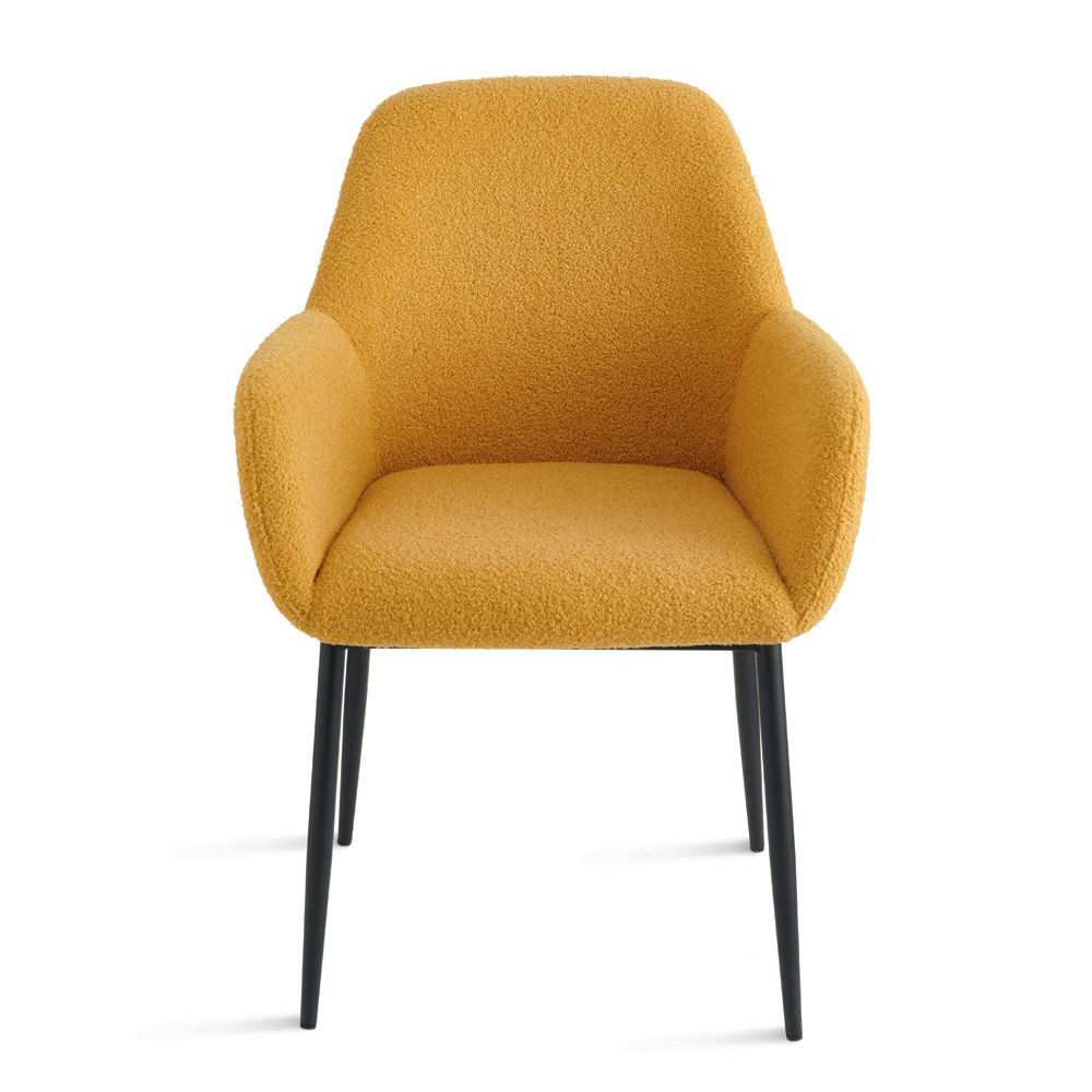 Un elegante conjunto de dos sillas tapizadas con un diseño contemporáneo, ideal para amueblar con estilo tu comedor o sala de estar . El tapizado en tela bouclé le da al asiento una textura suave y refinada, realzando el espacio con un aspecto moderno y acogedor.