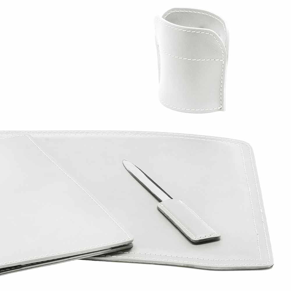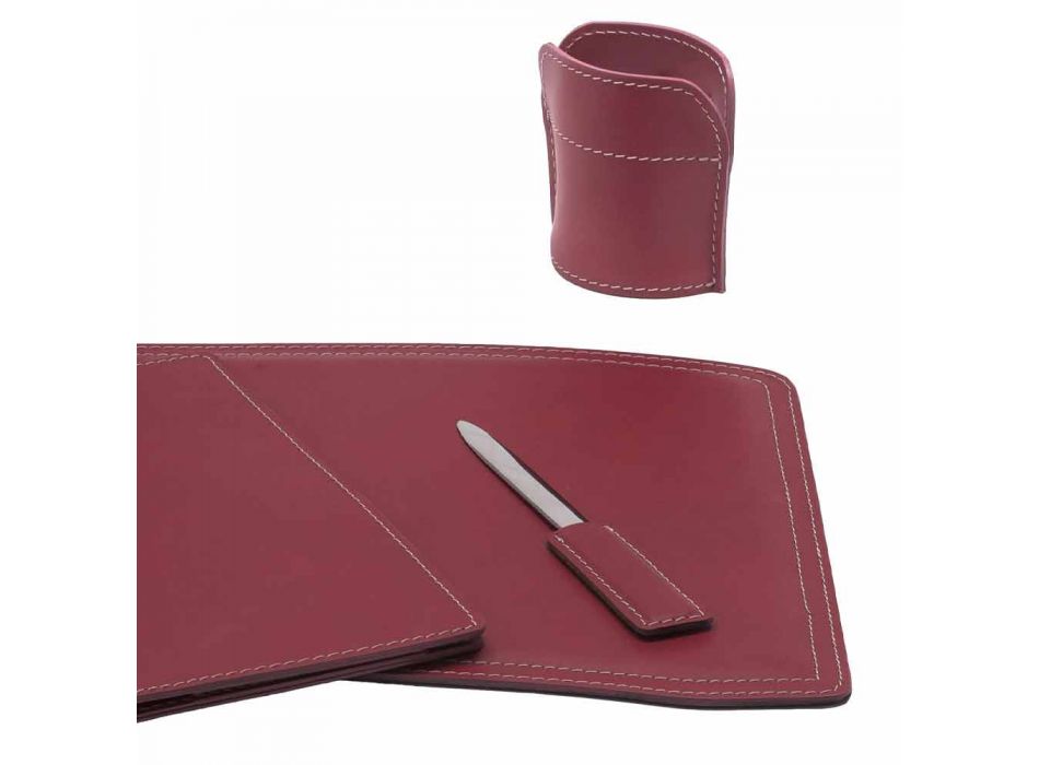 Accesorios de escritorio en piel regenerada, juego compuesto por 5 piezas, Made in Italy Brando