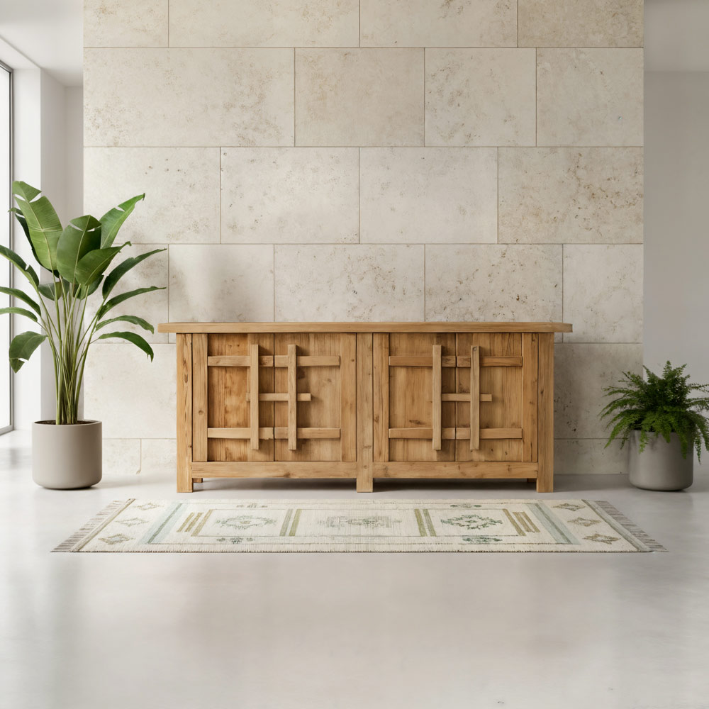 Este aparador de pino natural envejecido es una pieza con un carácter auténtico y texturizado, ideal para espacios rústicos, campestres o de estilo natural. El acabado envejecido resalta la veta de la madera y sus imperfecciones, haciendo que cada pieza sea única y llena de personalidad.