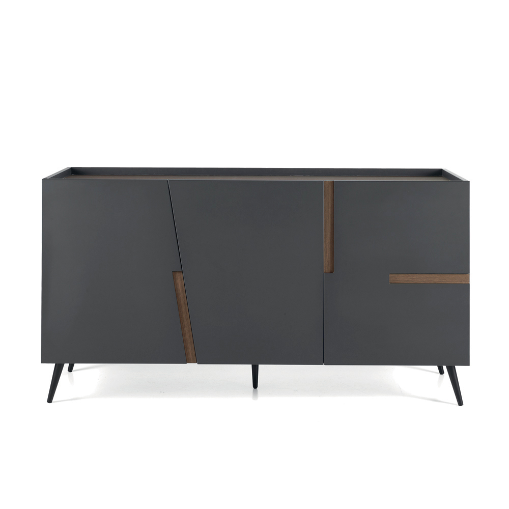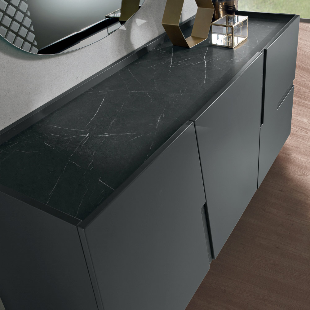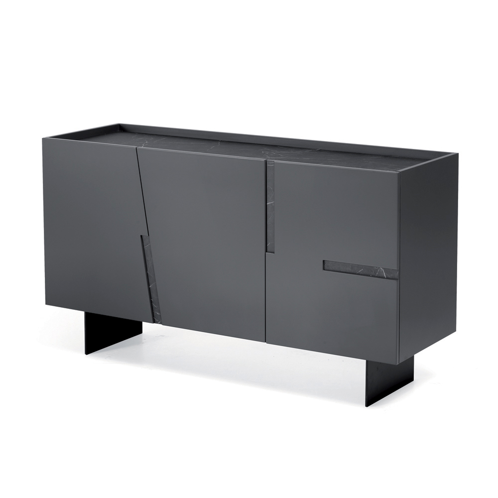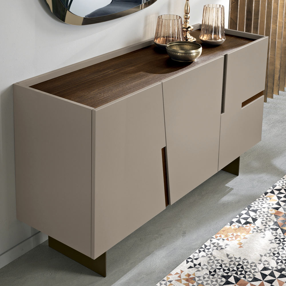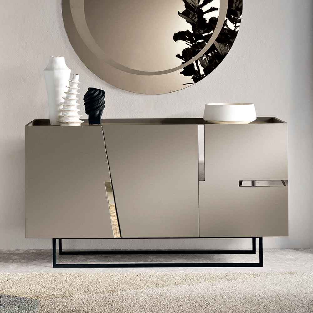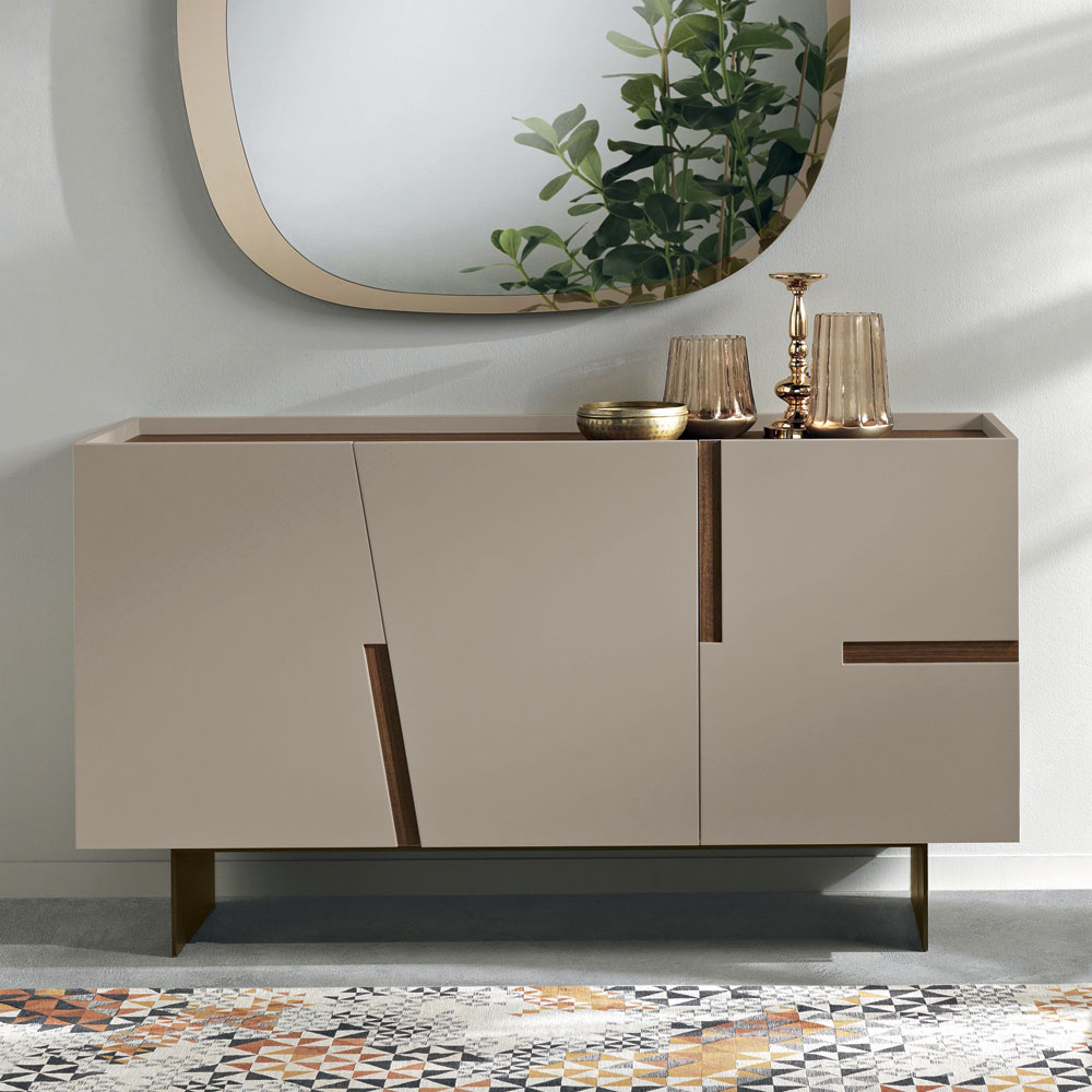 Aparador de diseño fabricado en Italia con puertas lacadas e inserciones decorativas en contraste.