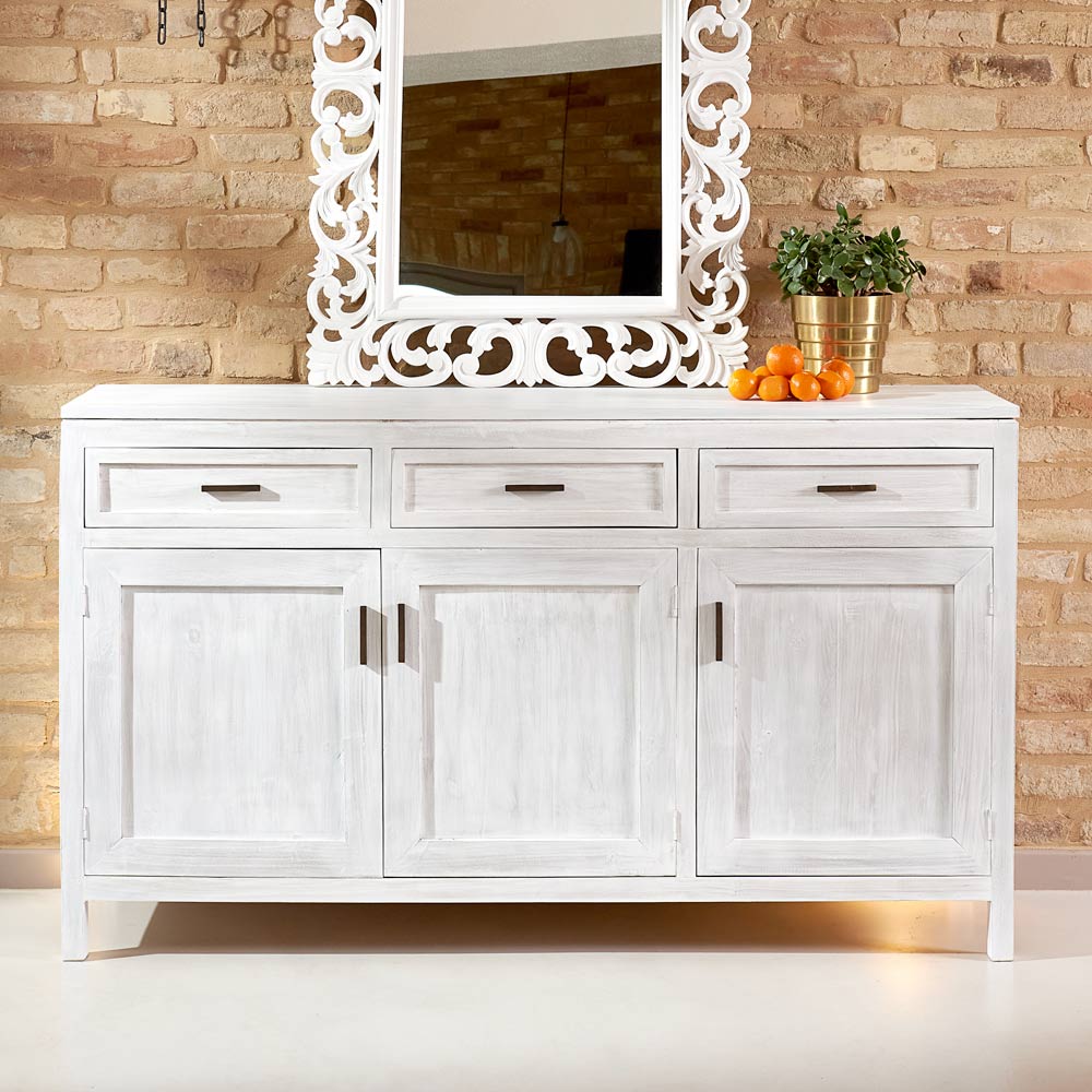También son normales ligeras irregularidades, como pequeñas desalineaciones en puertas o cajones, ligeras deformaciones, marcas superficiales, rellenos o tacos, especialmente al utilizar madera recuperada. Las medidas son aproximadas y pueden variar ligeramente, al igual que algunos detalles ornamentales y estilísticos.