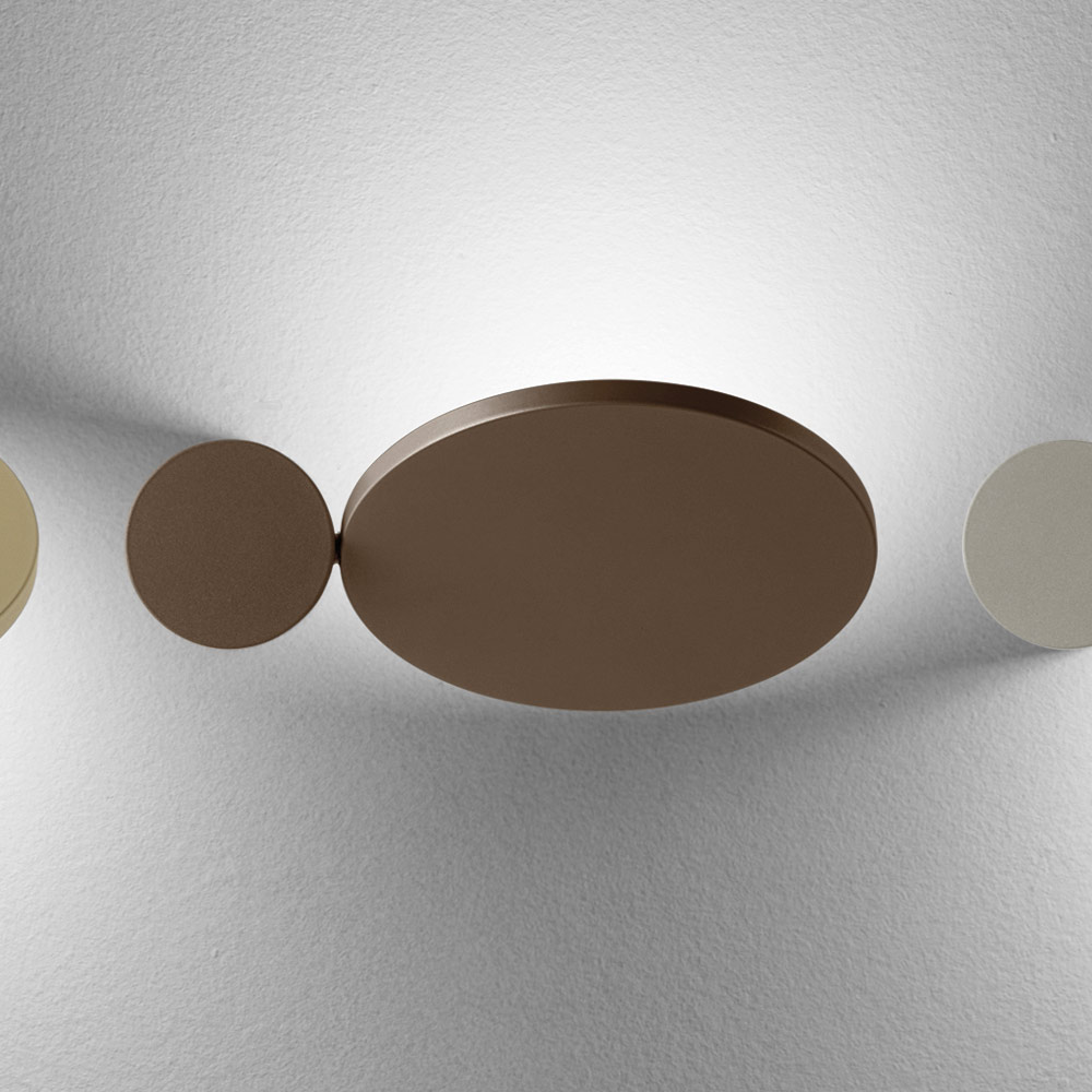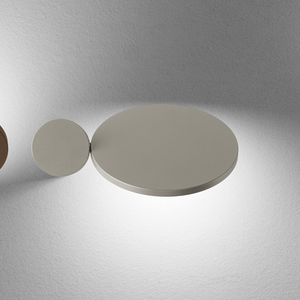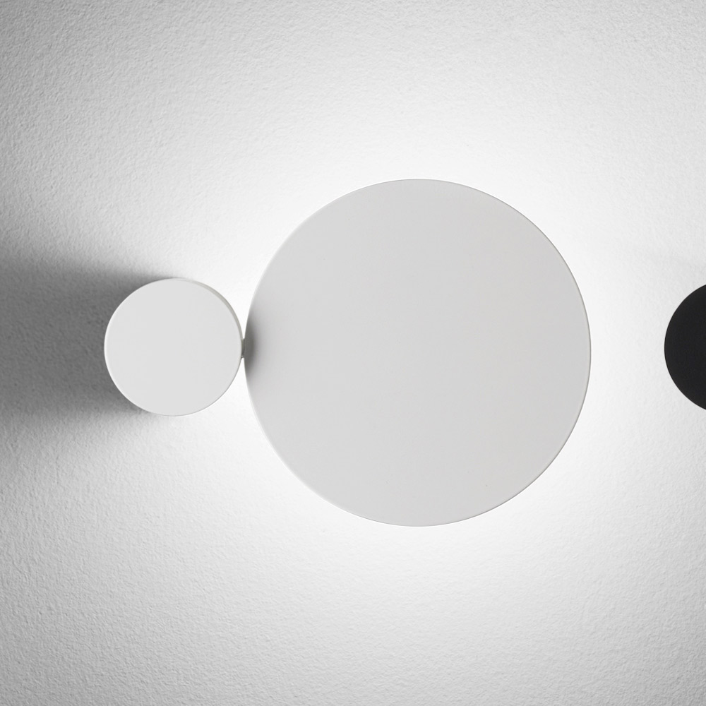 Este aplique de pared es una auténtica obra de arte luminosa , que fusiona diseño gráfico y función decorativa en un solo gesto. Compuesto por formas geométricas esenciales , juega con discos y óvalos superpuestos que, al encenderse, crean un efecto de iluminación suave y dramático en la pared.