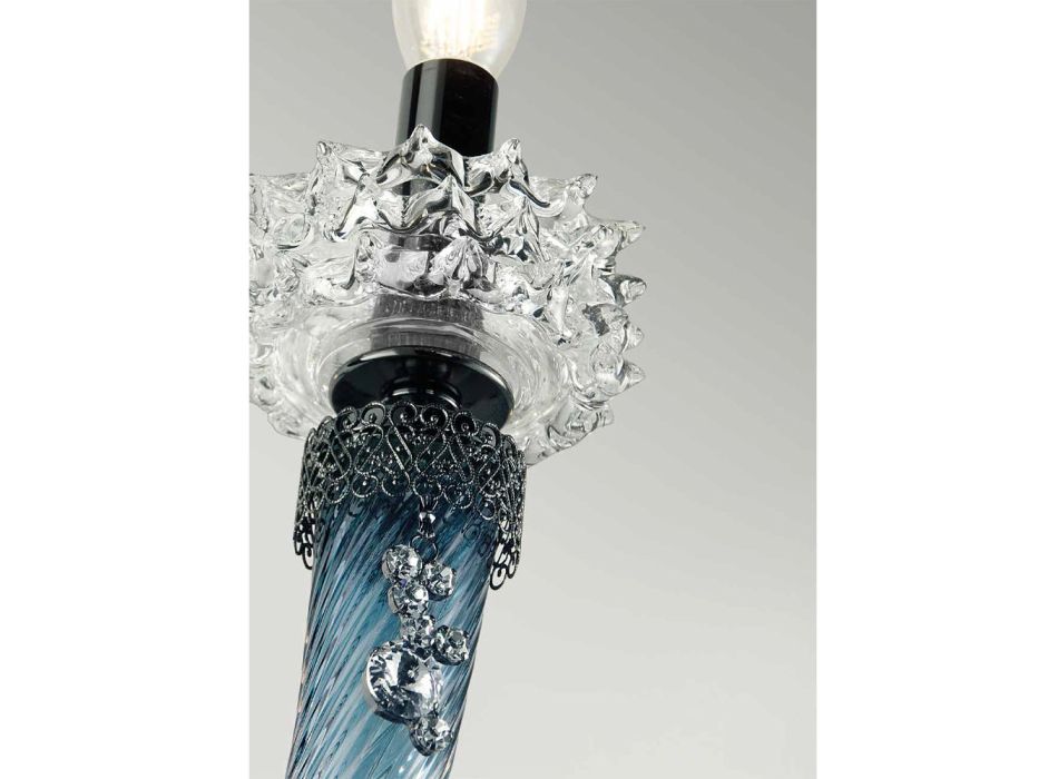 La araña de suspensión con 30 luces es un accesorio de iluminación de lujofabricado íntegramente en Italia en vidrio artesanal de la más alta calidad. Lo que lo hace único y majestuoso son los detalles joya , también hechos a mano, y los acabados metalizados que dan vida a un estilo clásico de antaño, cuyo encanto se convierte en protagonista en el espacio destino.