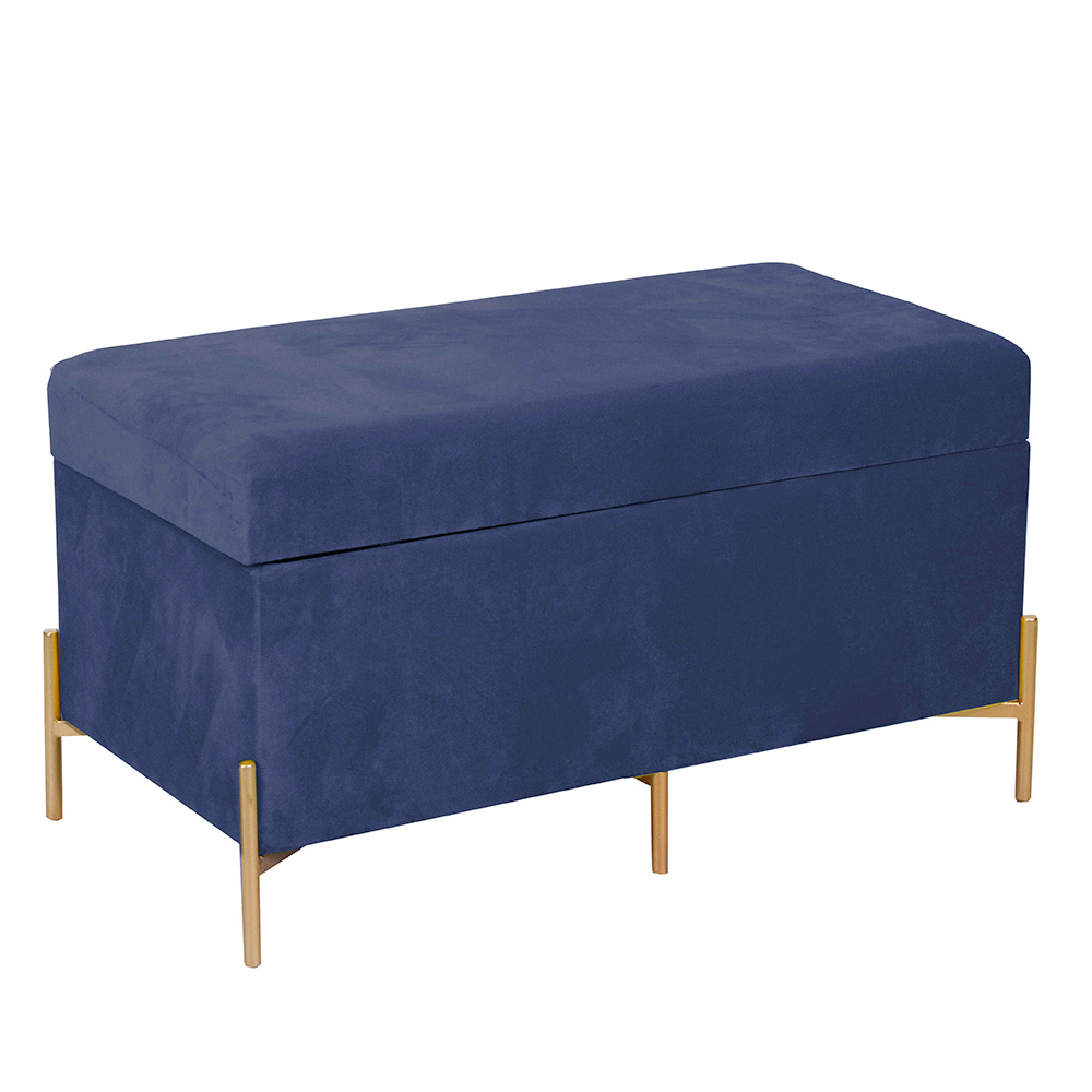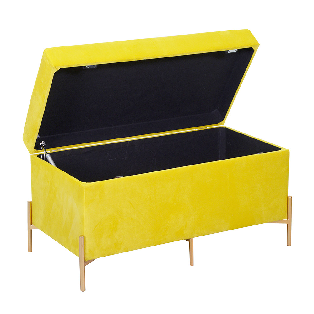 Este banco de almacenaje, gracias a su brillante tapizado de terciopelo y sus finos acabados, es perfecto para ambientes modernos y chic, representando una opción de estilo que combina diseño y comodidad para el día a día.
