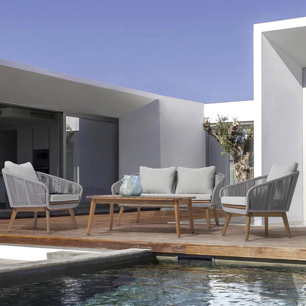 Modular y mecedoras sofás hechos de madera y aluminio para un estilo clásico de siempre, sillones hechos de ratán en mal estado chic o estilo étnico para dar a sus clientes asientos de diseño confortable y café mesas en acero o madera de bambú para combinar con los asientos para crear un salón en el jardín perfecto para alojar a tus amigos y perderte en largas conversaciones.
