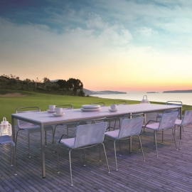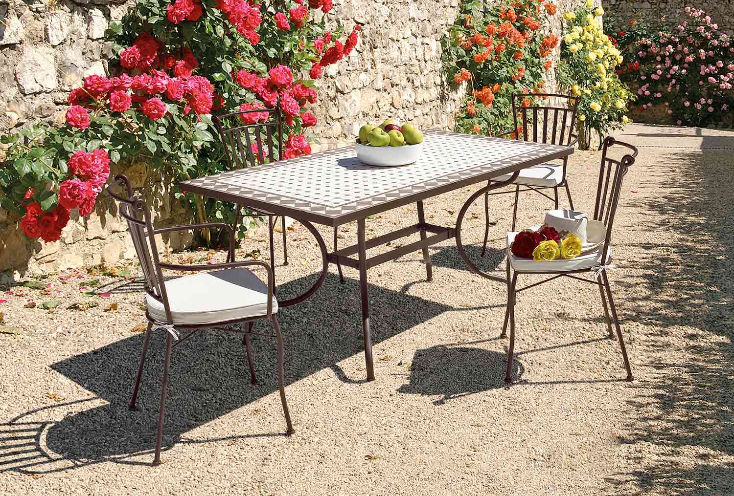 Y para un desayuno, almuerzo o cena inolvidable y mágico en el jardín, le ofrecemos una amplia selección de mesas con tapa de vidrio o cerámica, rectangular, redonda u ovalada para combinar con sillas combinadas con el diseño de su mesa favorita.