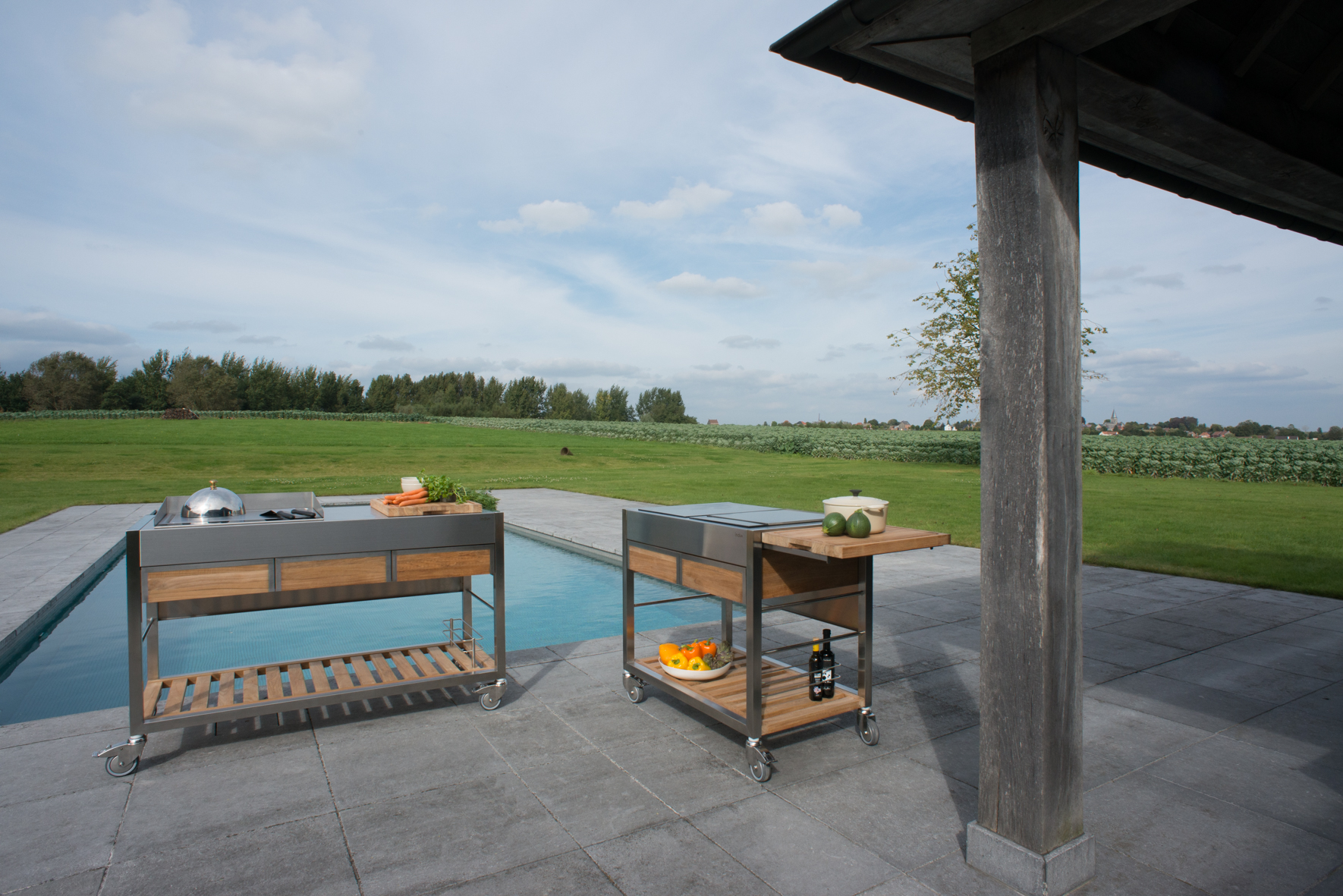 Para una idea original y funcional para los amantes de la cocina y la estancia al aire libre, están las cocinas de jardín de la colección Viadurini in the Garden. Cocinas de exterior funcionales y fácilmente transportables gracias a las ruedas, están fabricadas en madera de teca y acero inoxidable cepillado.