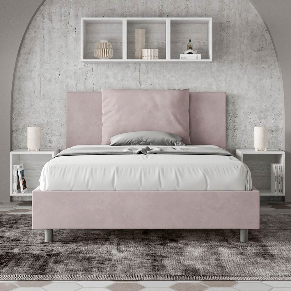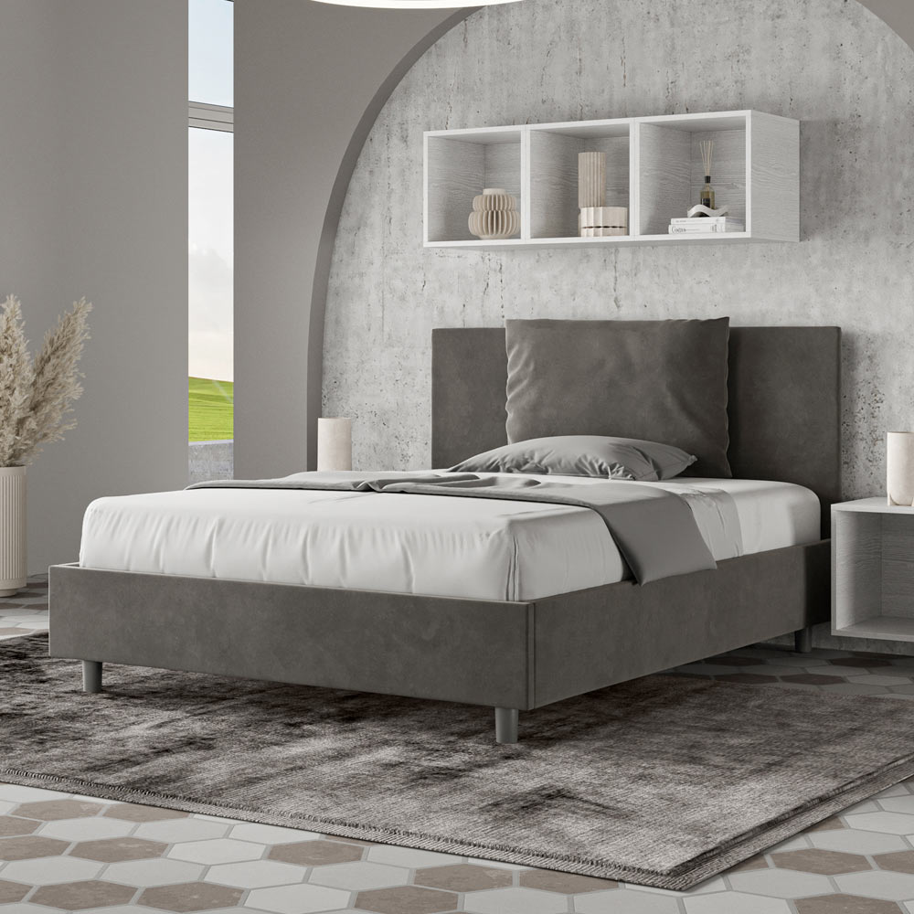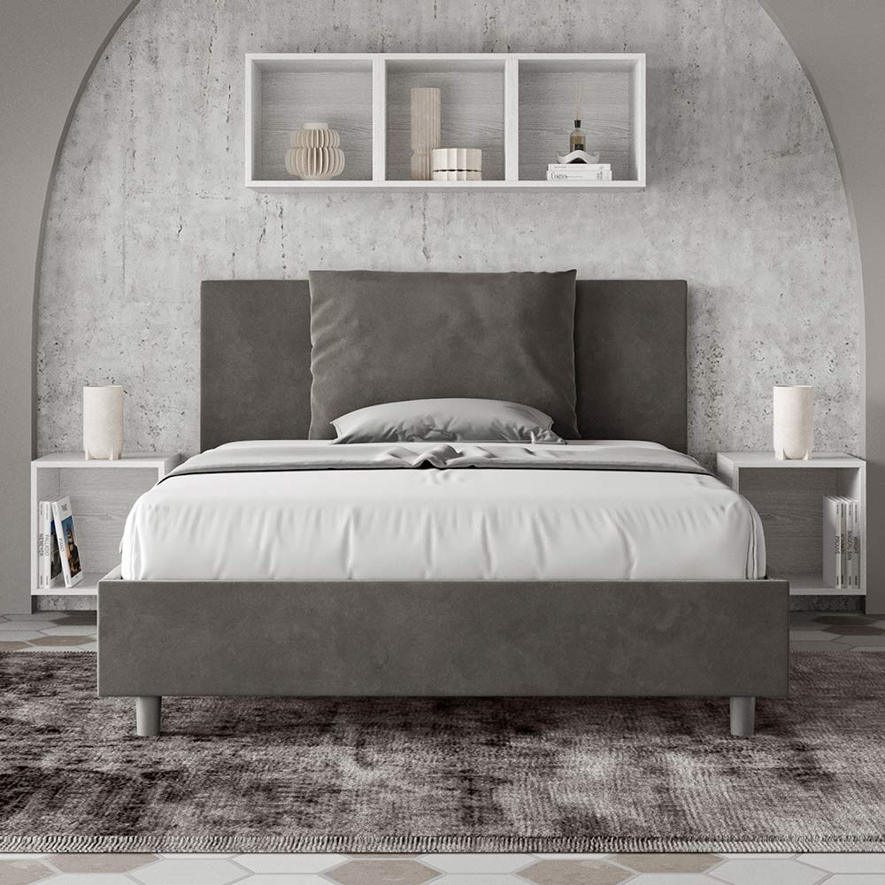 Cama francesa 140x200 cm acolchada con paneles de melamina y revestida de microfibra , totalmente Made in Italy. Esta cama francesa con estructura tapizada encarna a la perfección las ventajas de una cama tapizada: comodidad, estilo contemporáneo, funcionalidad y un uso eficiente del espacio . Con su cabecero ancho y acolchado , ofrece un rincón de relax ideal para leer o ver la televisión, realzando su dormitorio. Elegante y con estilo, esta cama está tapizada en microfibra, lo que facilita y agiliza su limpieza: simplemente límpiela con un paño de microfibra para mantenerla reluciente.