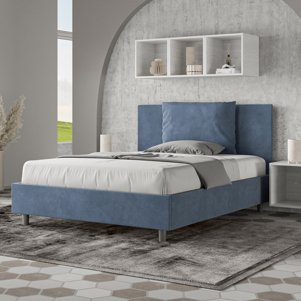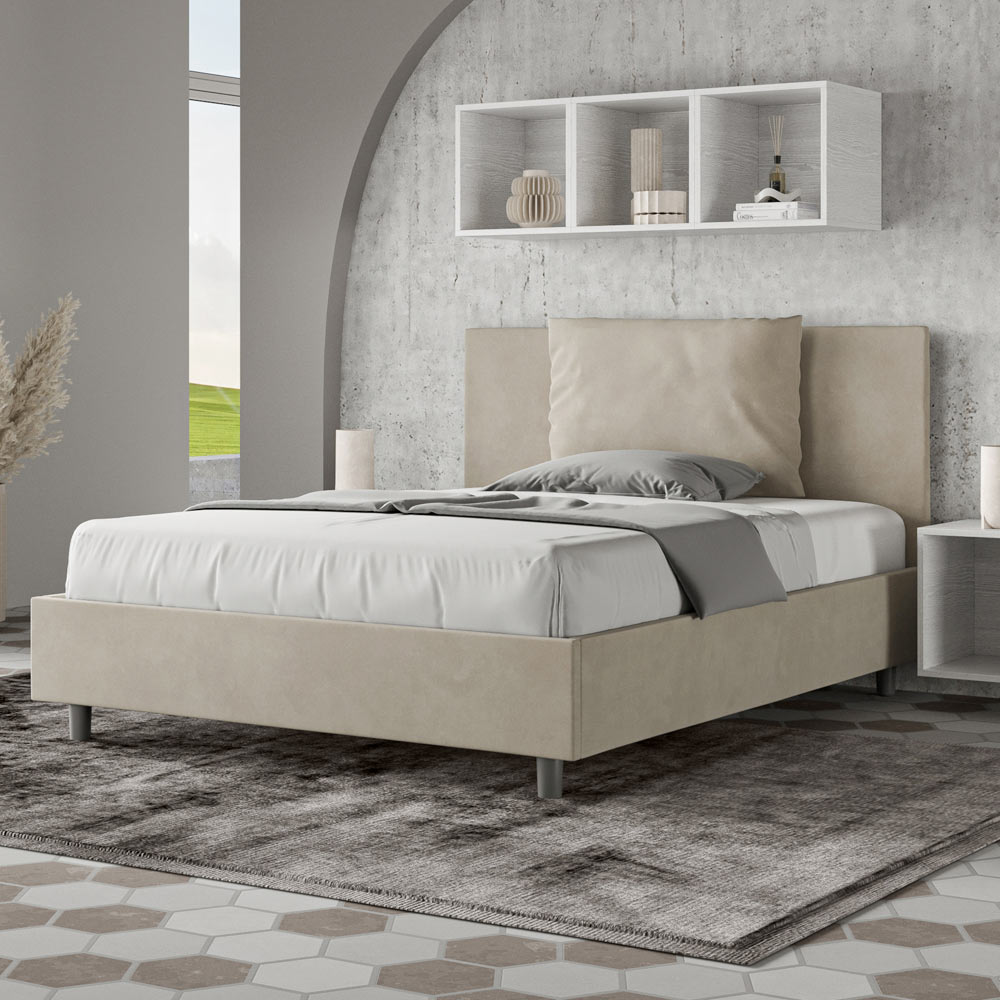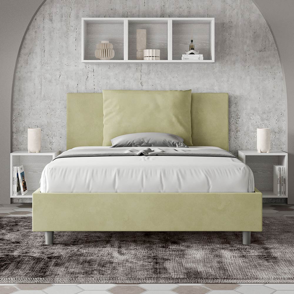 Cama francesa 140x200 cm acolchada y revestida en microfibra, Fabricada en Italia
