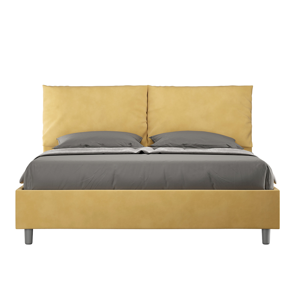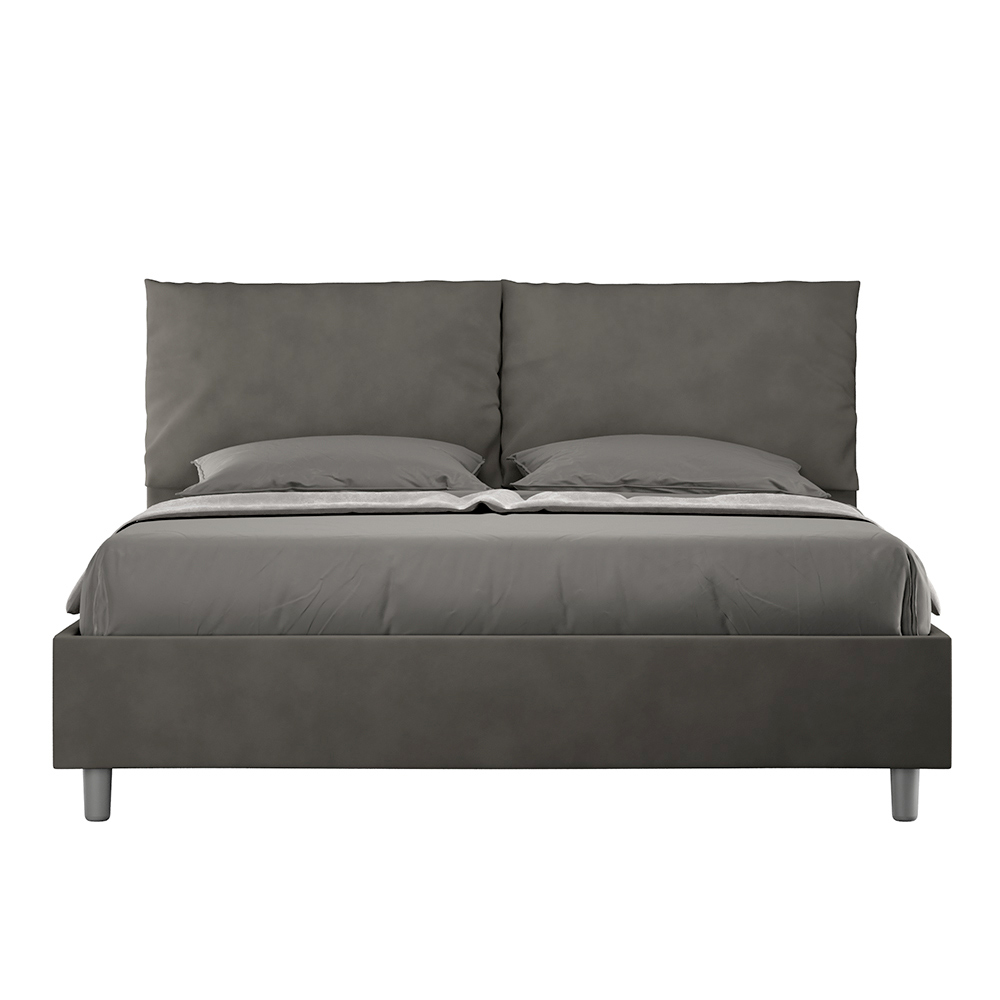 Cama doble de 160x200 cm acolchada y revestida en microfibra, Made in Italy