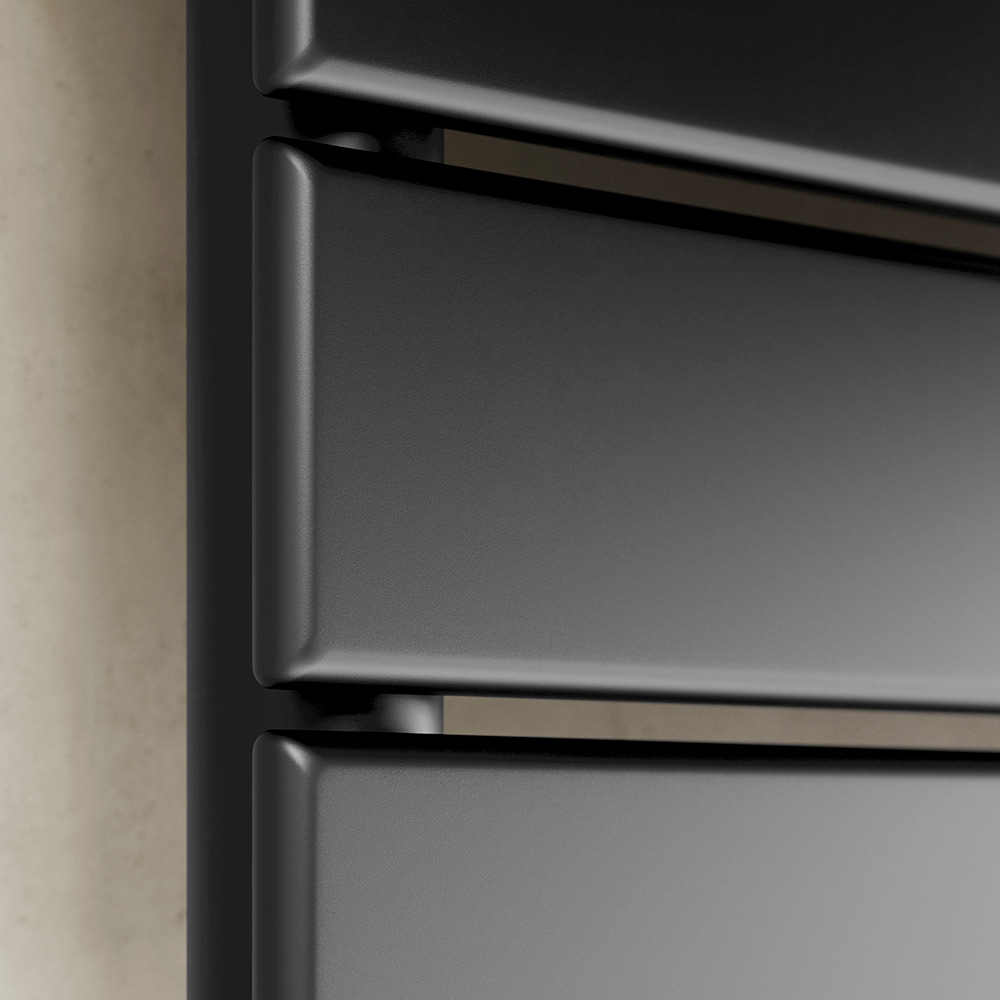 Este calienta toallas de color negro representa la elegancia pura y la sofisticación en cada detalle. Su diseño moderno y sus líneas geométricas limpias añaden un toque de estilo contemporáneo a cualquier baño, integrándose a la perfección con diversos estilos de decoración, desde los más minimalistas hasta los más atrevidos.