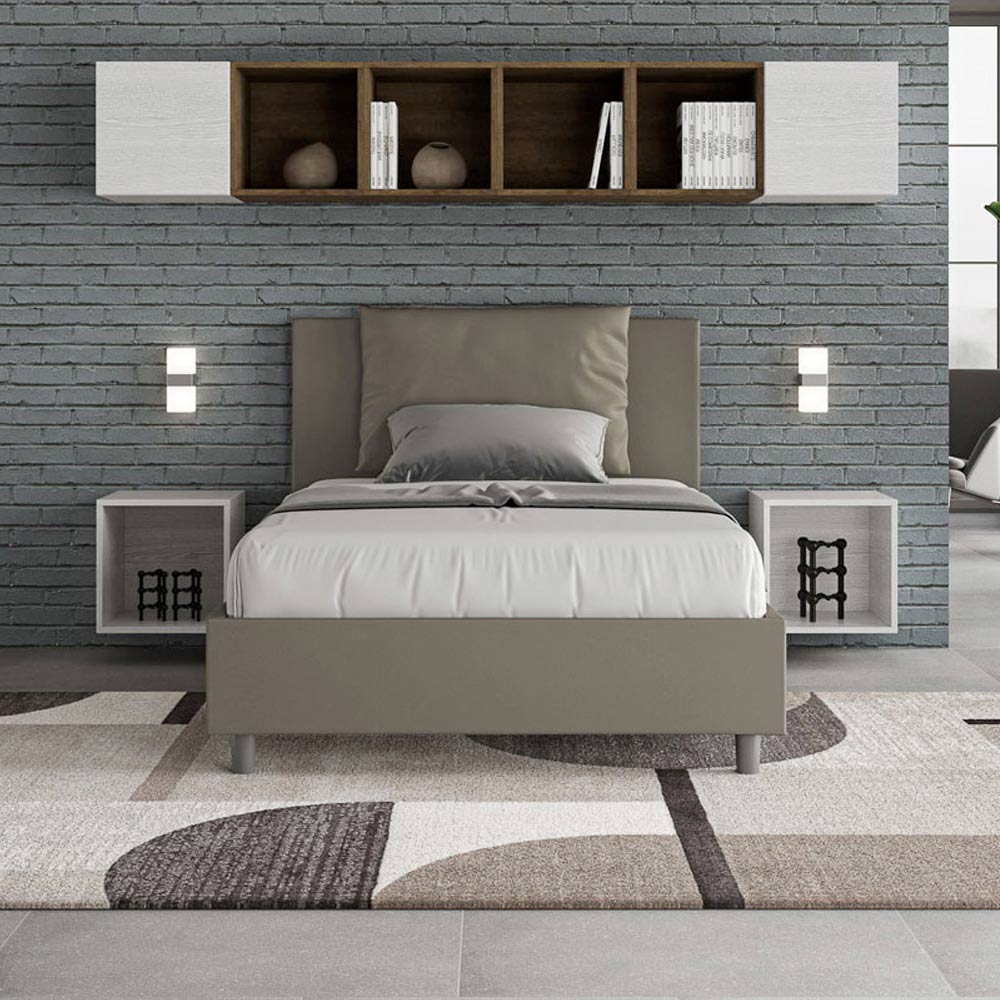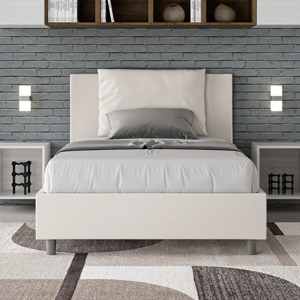 Cama de 120x200 cm con cabecero y cojines de piel sintética. Fabricada en Italia - Olimpiadi