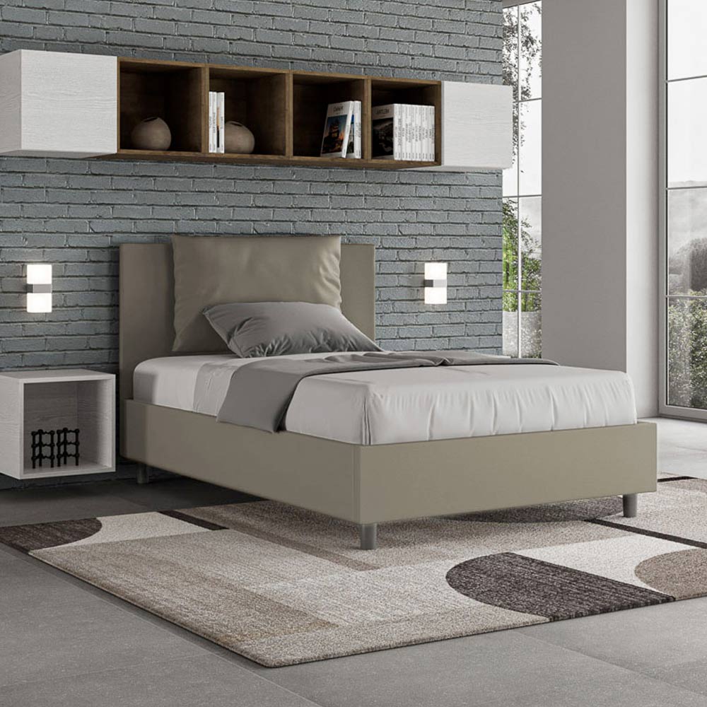 Cama matrimonial acolchada de 120x200 cm, fabricada con paneles de aglomerado y revestida en piel sintética , totalmente Made in Italy.