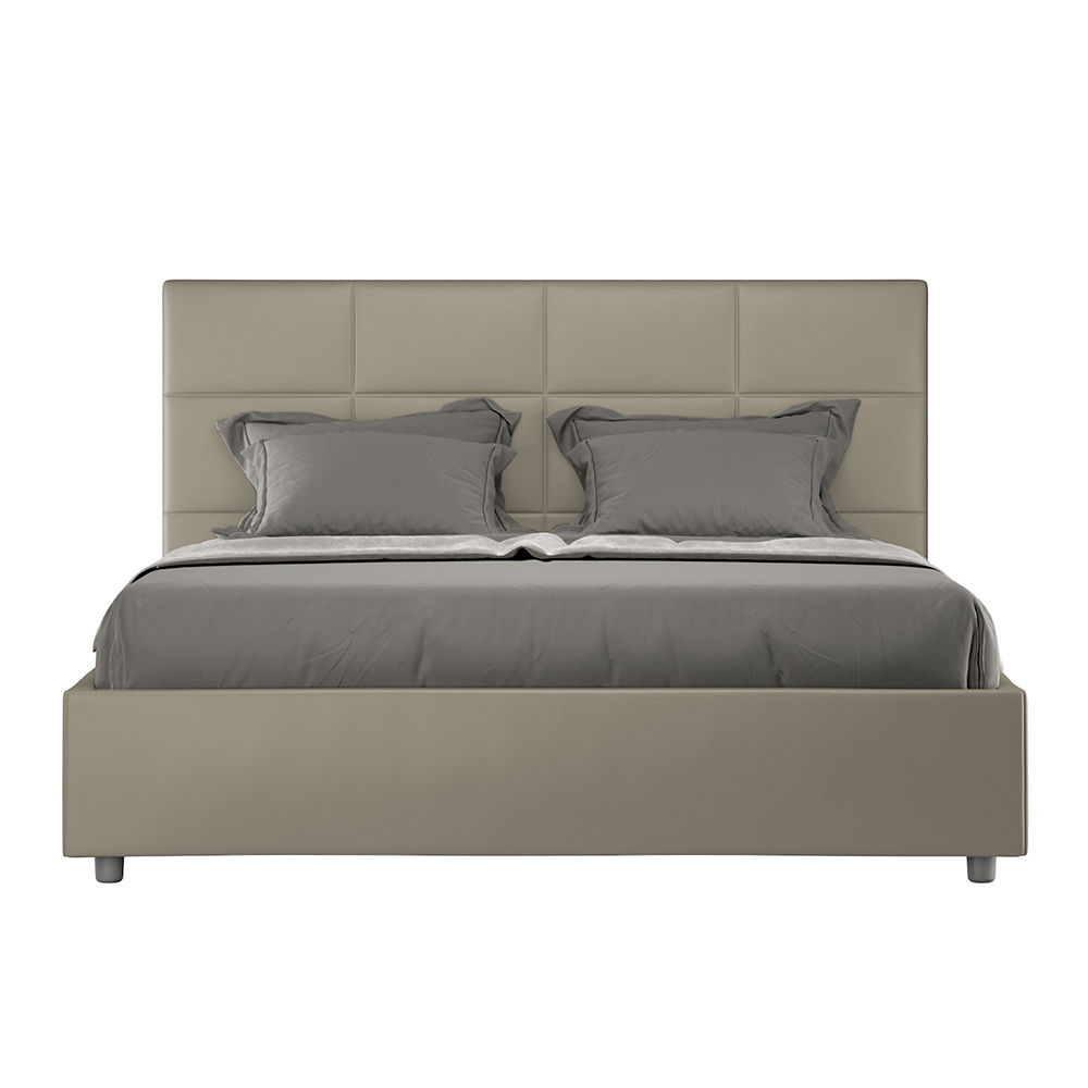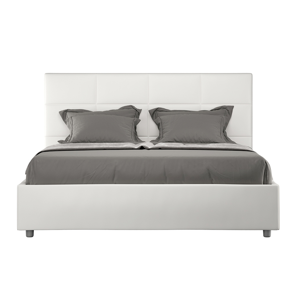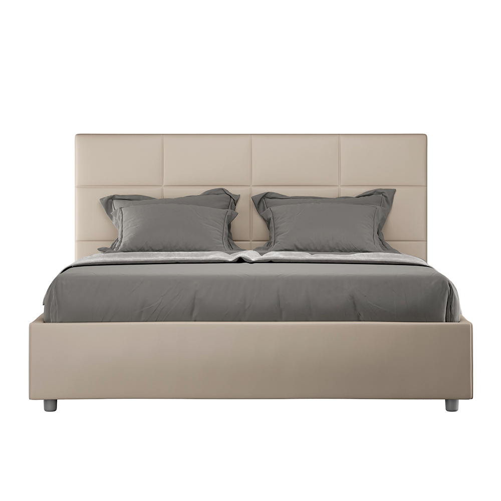 Cama doble acolchada de 160x200 cm revestida en piel sintética, fabricada en Italia.