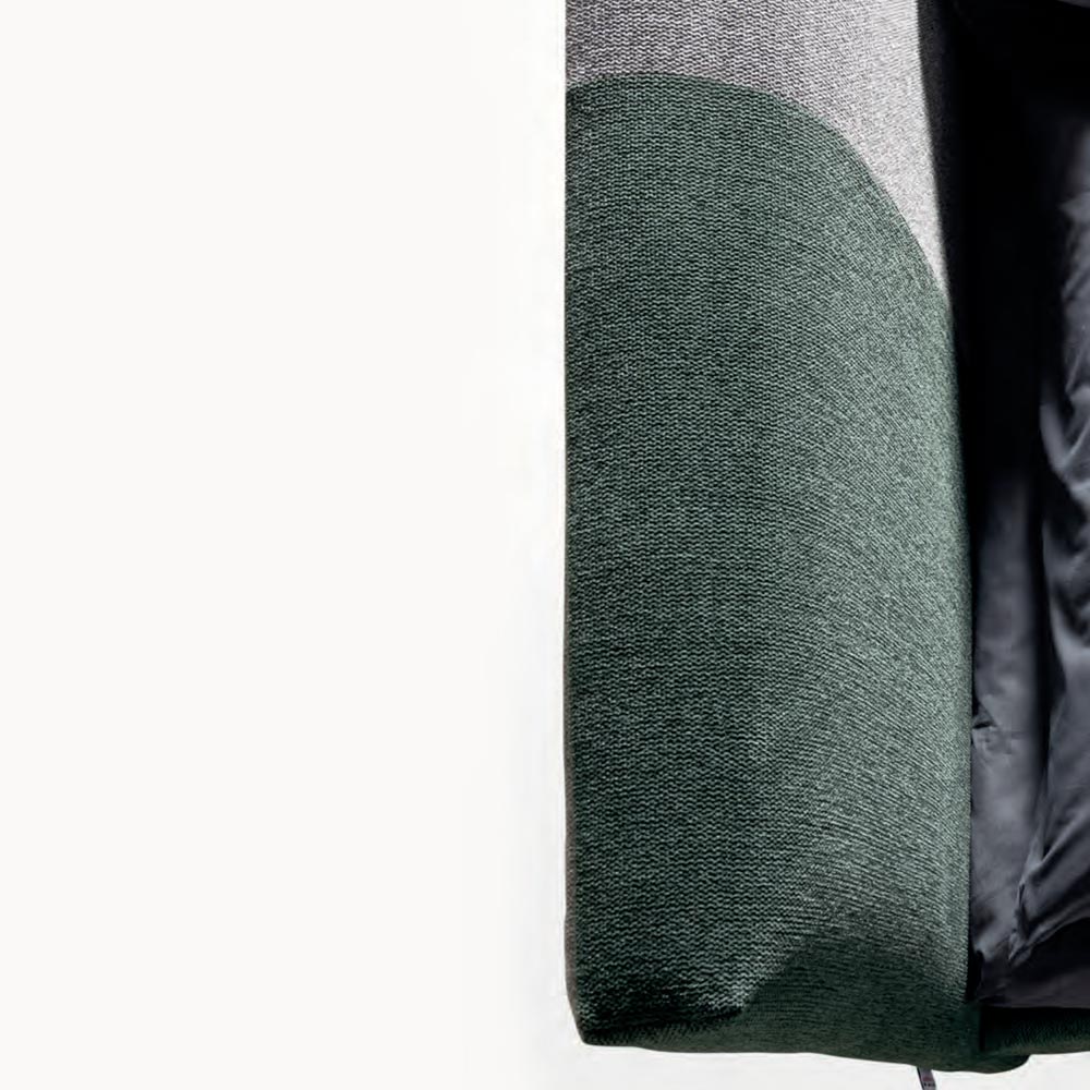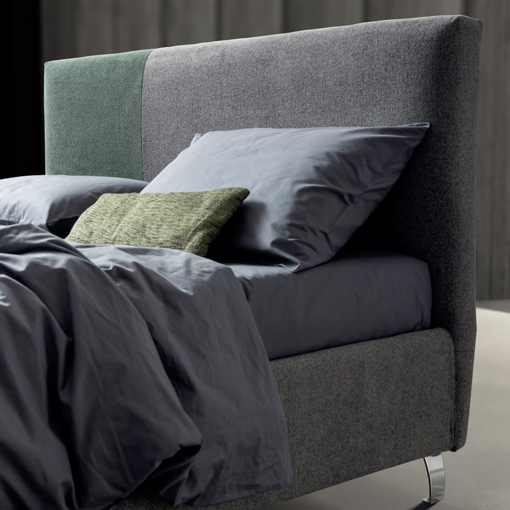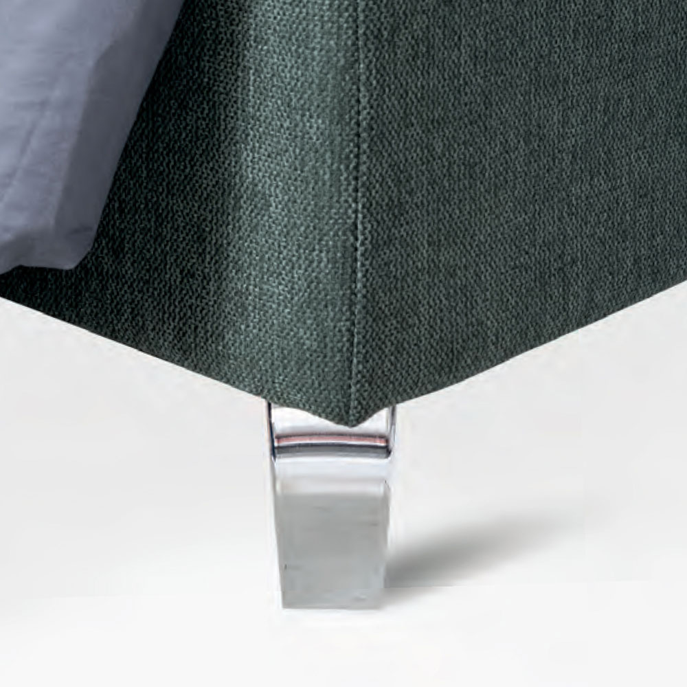 - Los paneles inferiores del arcón contenedor, certificados en clase E1 con bajísimo contenido de formaldehído, están realizados en laminado de 10,5 mm de espesor, de color gris a juego con el tejido interno del marco de la cama, para permitir una fácil limpieza e higiene mediante un paño húmedo común para el polvo.