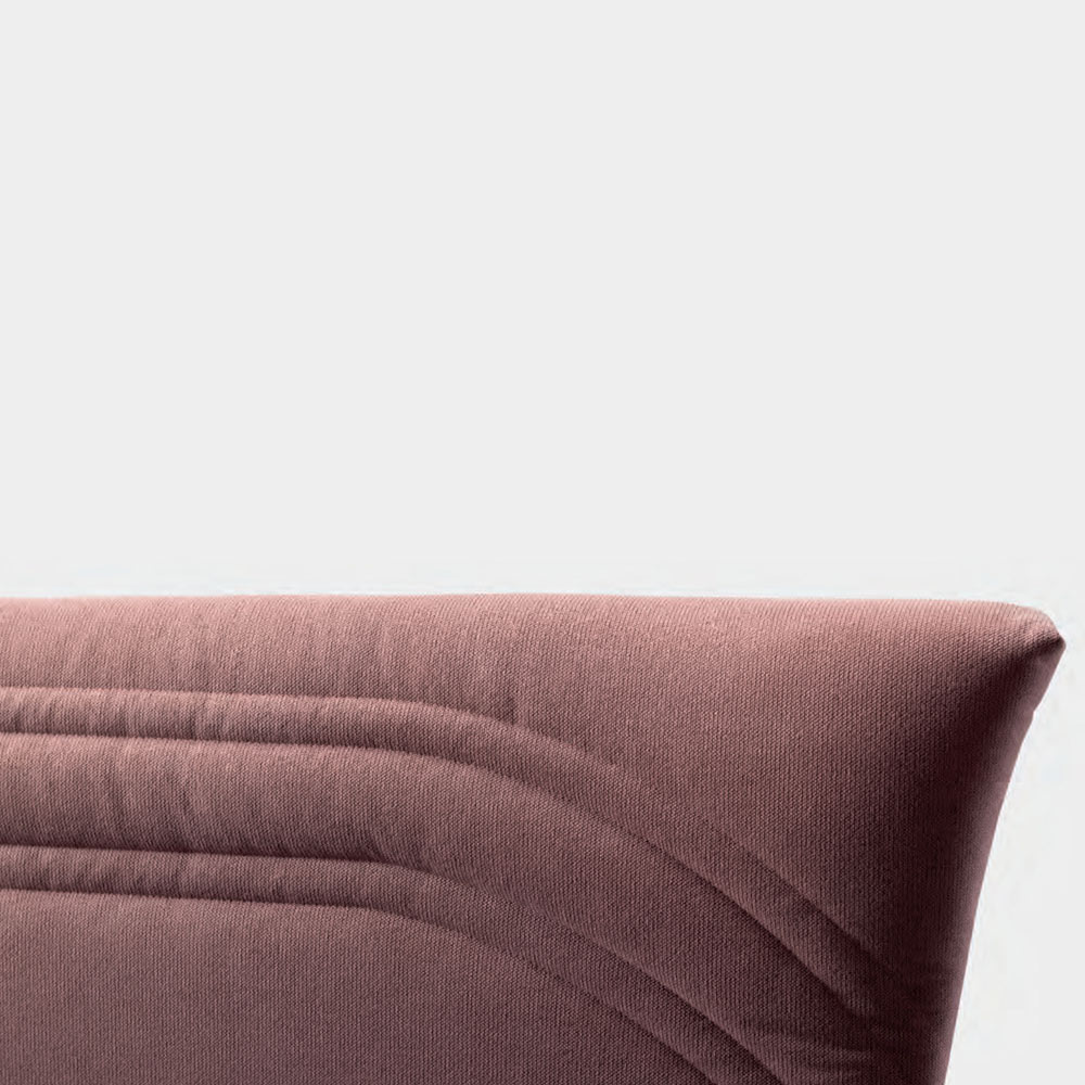de metal acabado antracita (altura 13,5 cm) y único e innovador cabecero realizado con laterales curvados y doble banda acolchada que recorre horizontalmente en tejido hidrófugo e ignífugo.