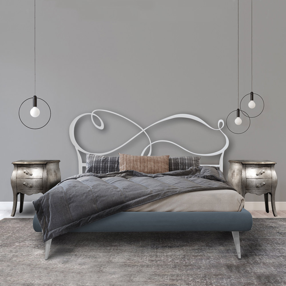 Cama doble con cabecero de hierro y 2 mesitas de noche Made in Italy