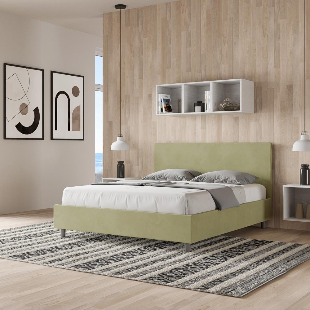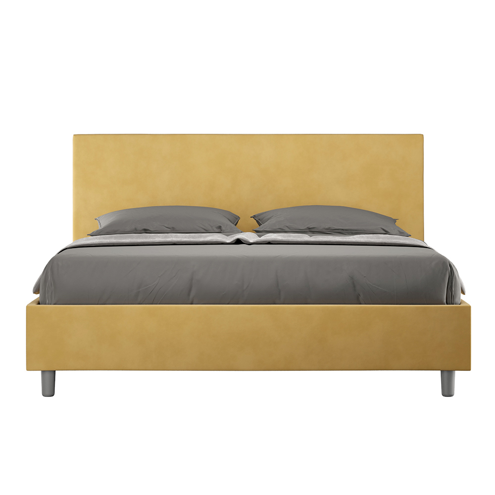Cama doble de 160x200 cm acolchada y revestida en microfibra, Made in Italy
