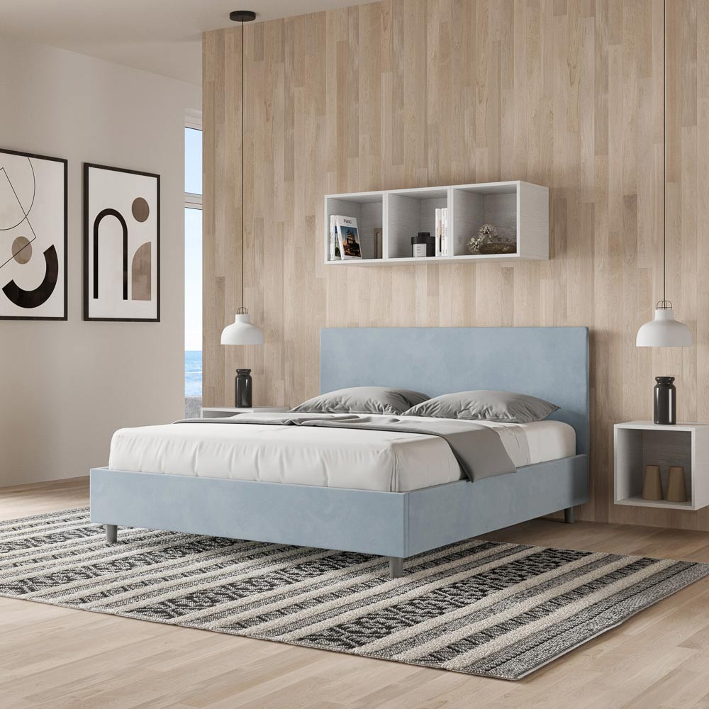 Cama de matrimonio acolchada de 160x200 cm realizada con paneles de aglomerado y revestida de microfibra , íntegramente Made in Italy.