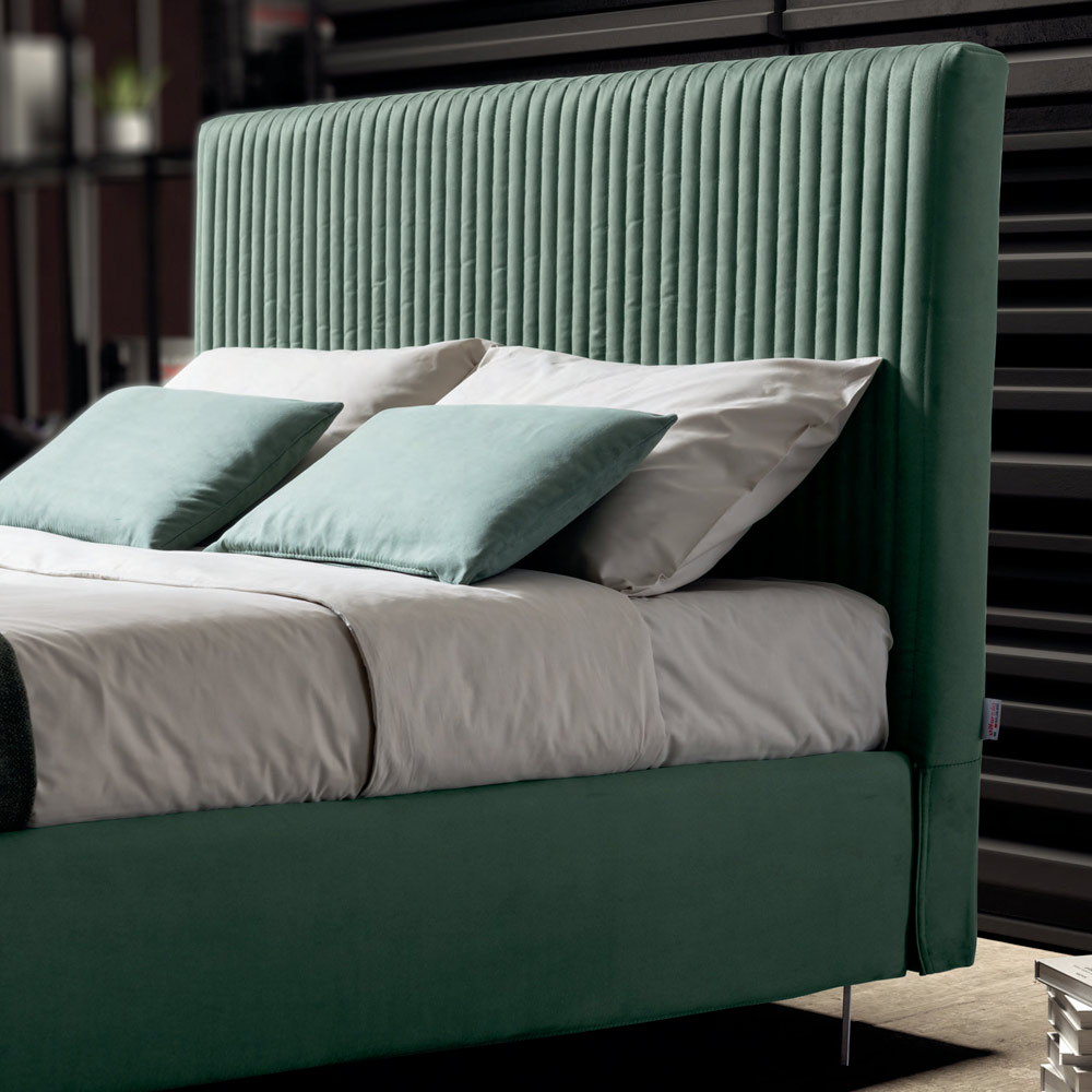 tejido hipoalergénico, antimanchas, transpirable y que no encoge , realizado con un particular proceso de acolchado con bandas estrechas y múltiples líneas verticales que resaltan su línea actual y original.