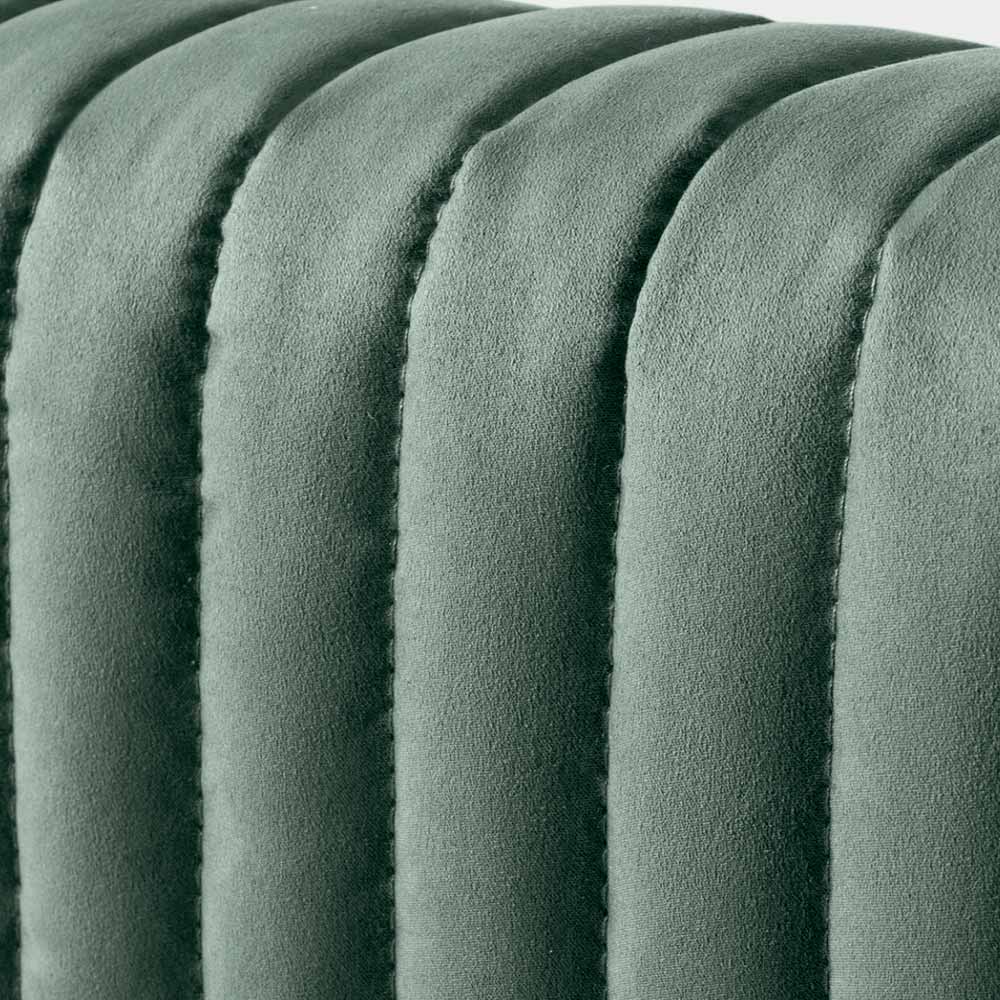 arcón contenedor, pies de metal con acabado acero pulido (altura 12 cm) y un grueso cabecero en