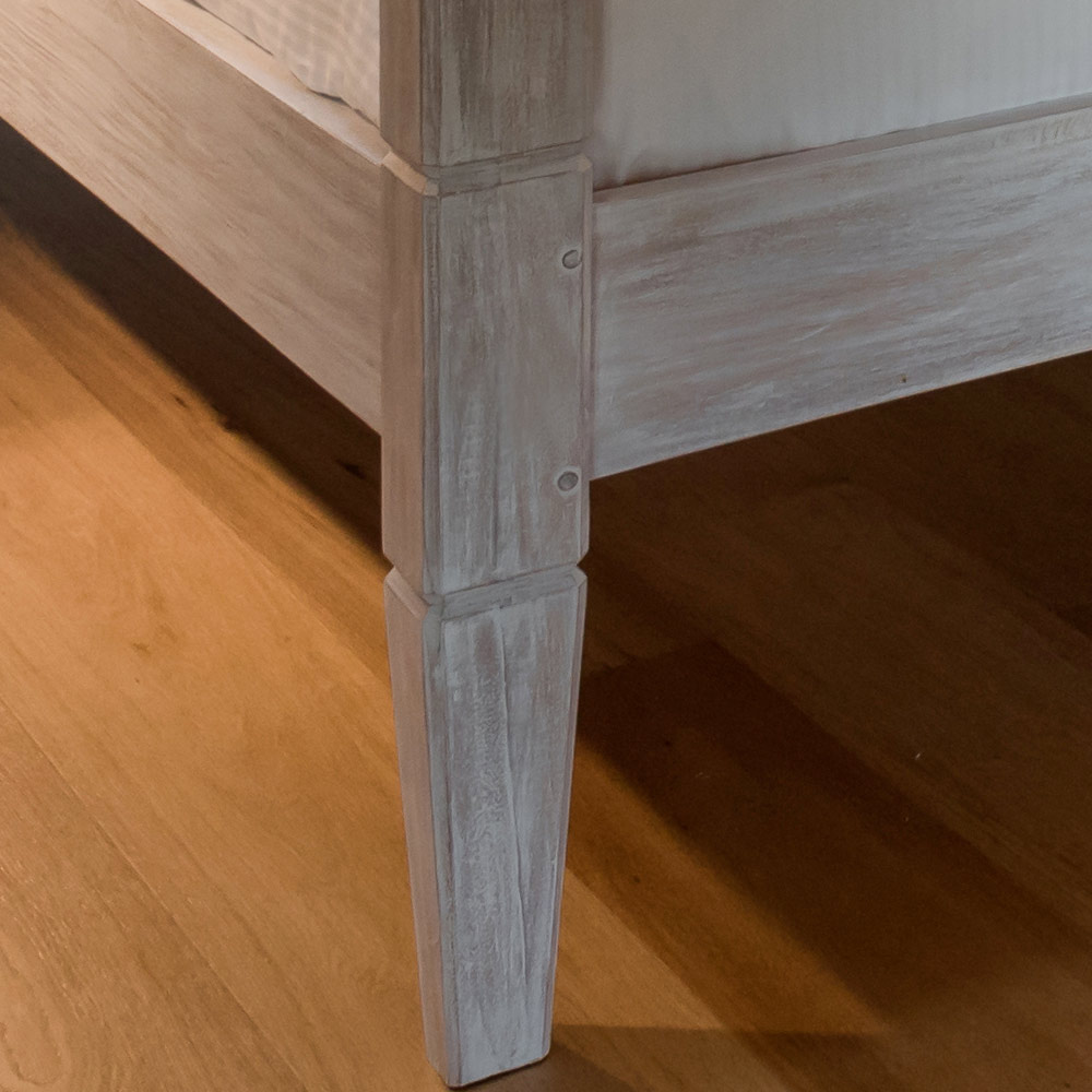 La cama está hecha a mano con madera secada naturalmente, un material vivo que puede experimentar movimientos naturales con el tiempo. Cualquier desperfecto o pequeña grieta es inherente a la madera y puede aparecer incluso con el tiempo.