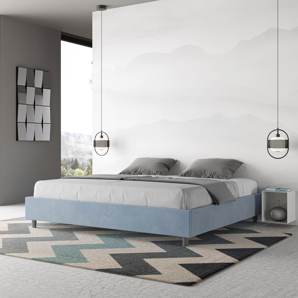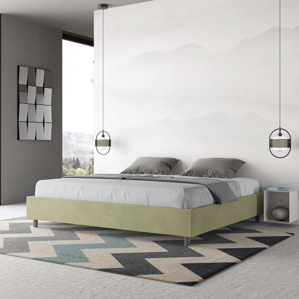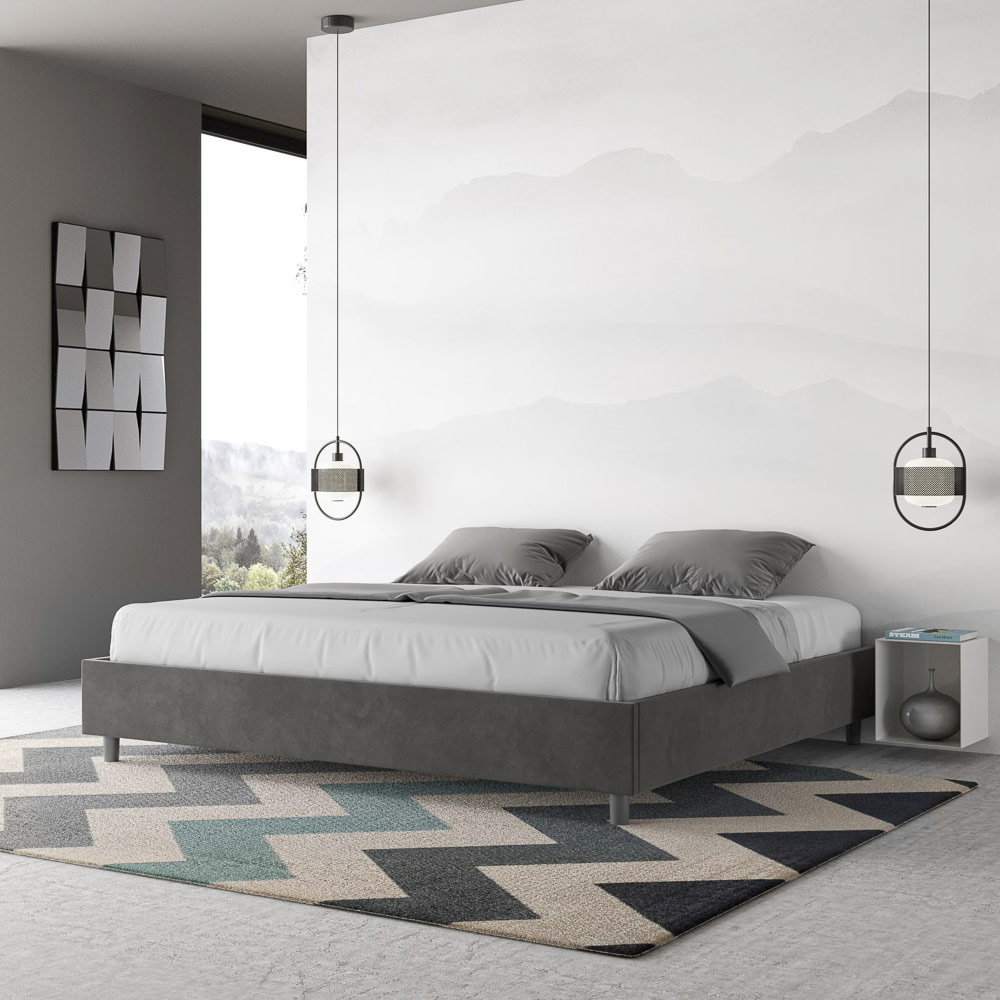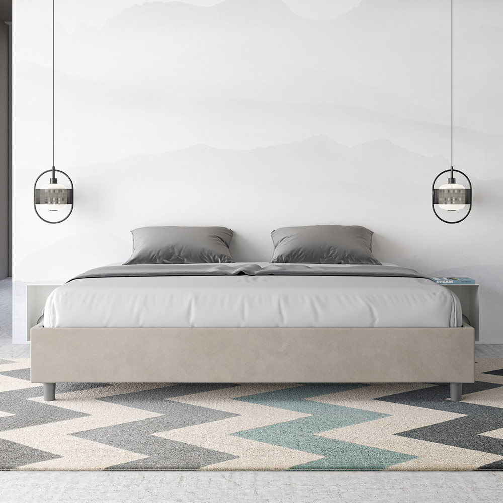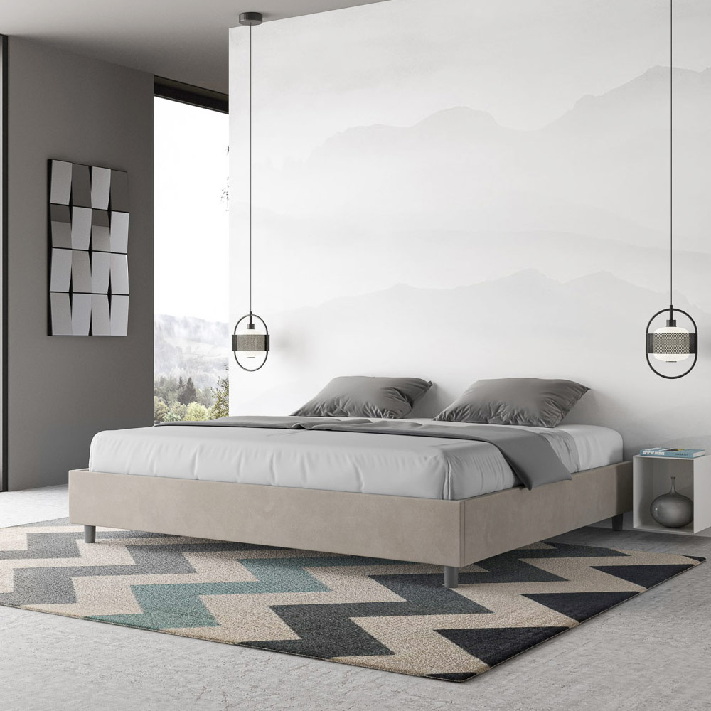 Cama super king size de 200x200 cm, acolchada, fabricada con paneles de melamina y revestida de microfibra , totalmente Made in Italy. Esta cama extragrande destaca por su diseño limpio y minimalista . Su estética discreta y su versatilidad facilitan su integración en cualquier ambiente. Una de sus características distintivas es la ausencia de un cabecero tradicional , lo que la hace ideal para colocarla en espacios singulares, como debajo de una ventana, en un ático o cerca de una pared decorativa, sin obstruir la vista ni lograr el efecto deseado.