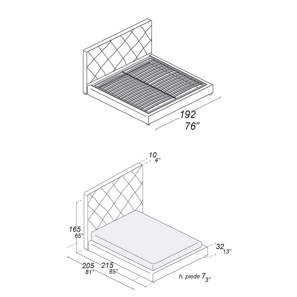 - Largo: 192 cm x profundidad: 215 cm x altura: 165 cm - apto para colchón de 180x200 cm