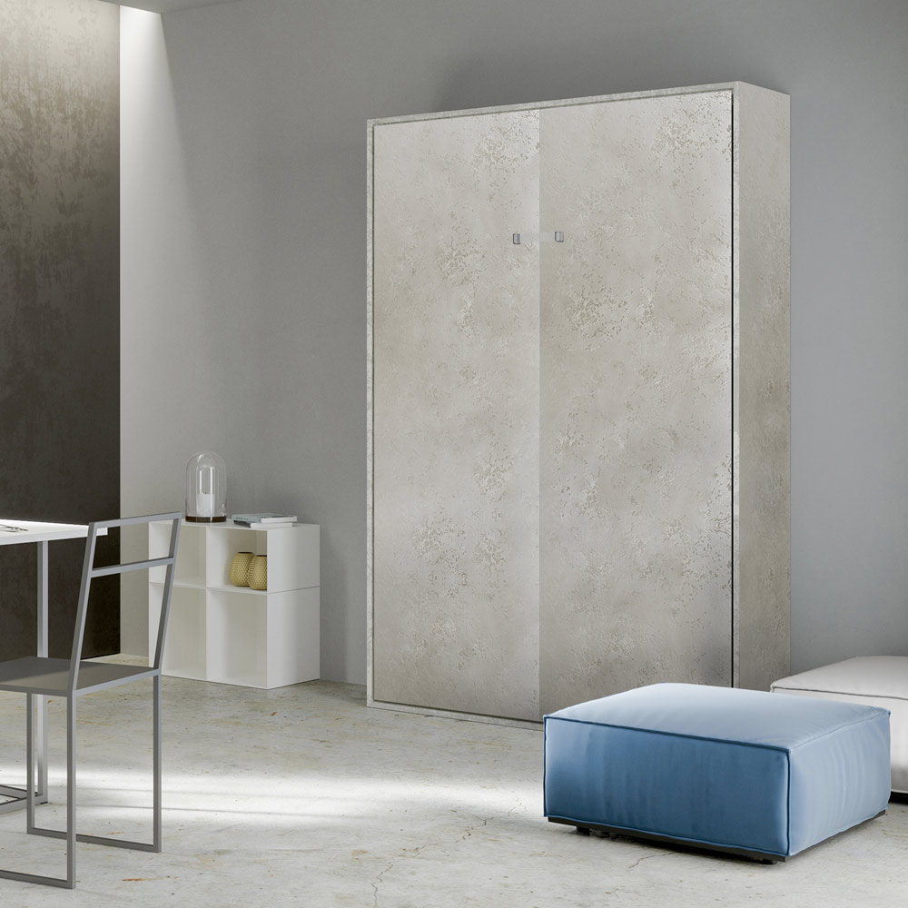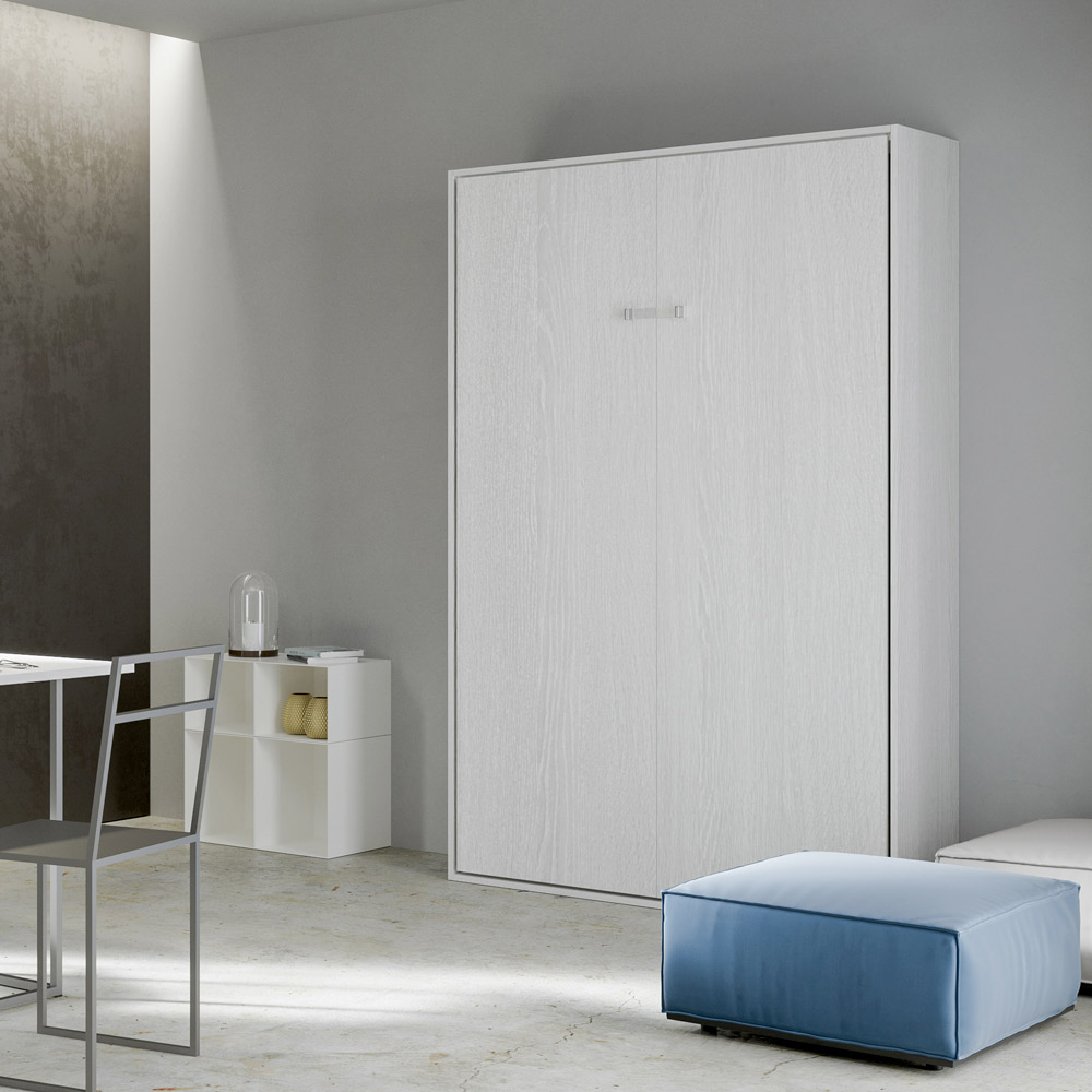 La estructura de la cama está fabricada con tableros de partículas de melamina de 18 mm de espesor , lo que garantiza resistencia y durabilidad. El mecanismo de apertura es suave y seguro, transformando la pared en una cómoda cama con un simple gesto.