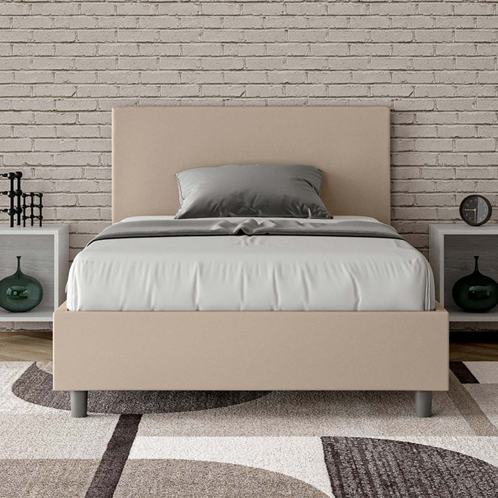 Cama de matrimonio, 120x200 cm, acolchada y tapizada en piel sintética, fabricada en Italia.
