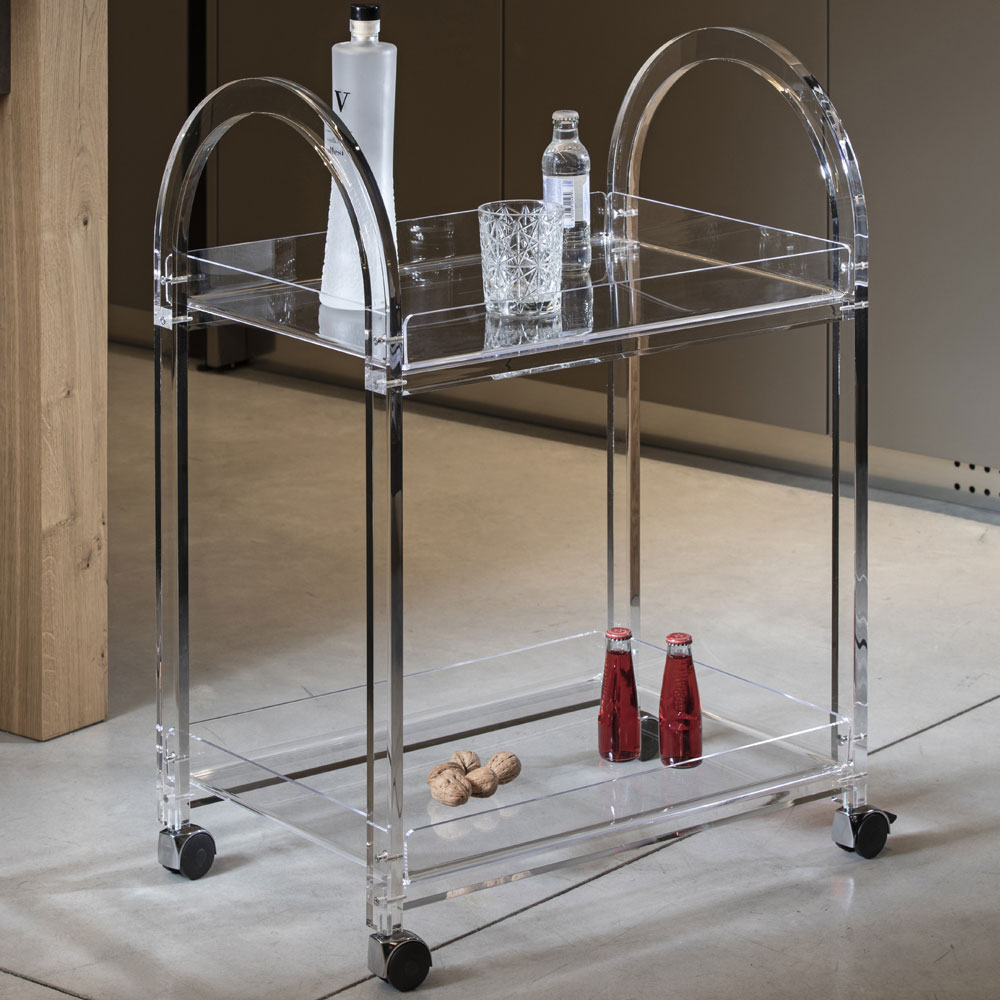 Carro de acrílico transparente con ruedas de diseño made in Italy.