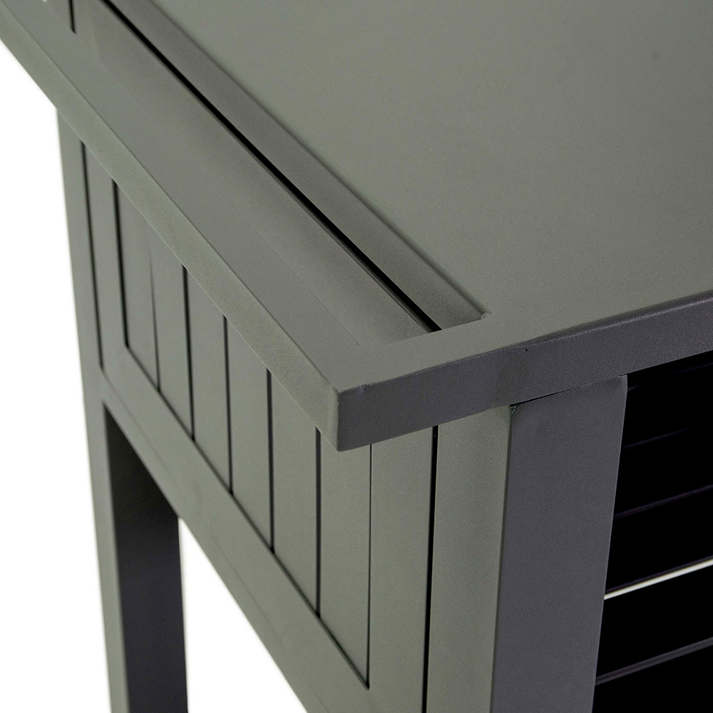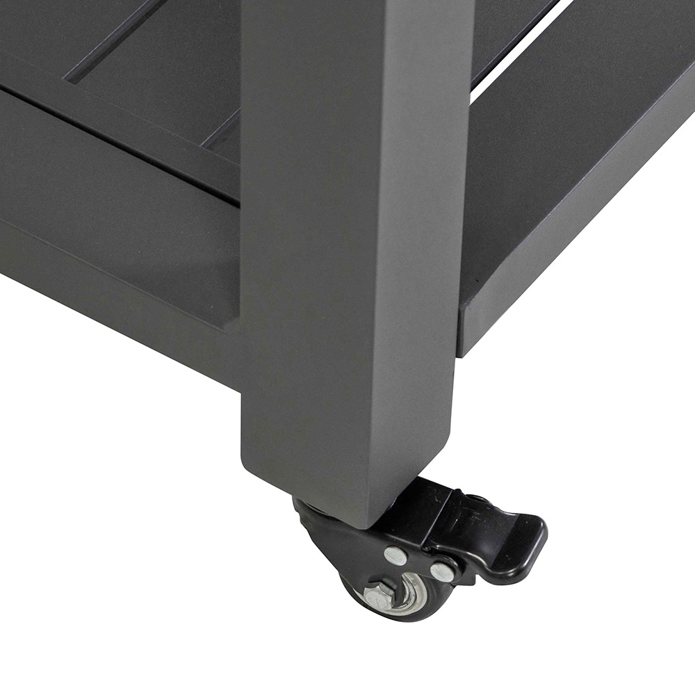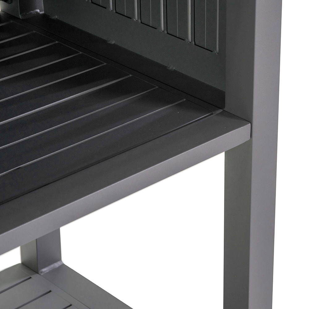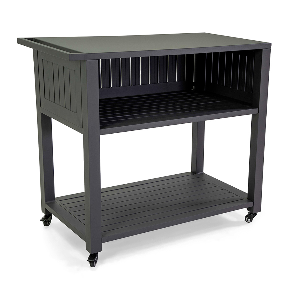Ofreciendo amplias superficies de trabajo y almacenamiento, el diseño incluye un práctico estante superior para preparar y servir, un estante central para mantener los utensilios y accesorios a mano, y un gran estante inferior perfecto para almacenar suministros adicionales o grandes herramientas de jardín.