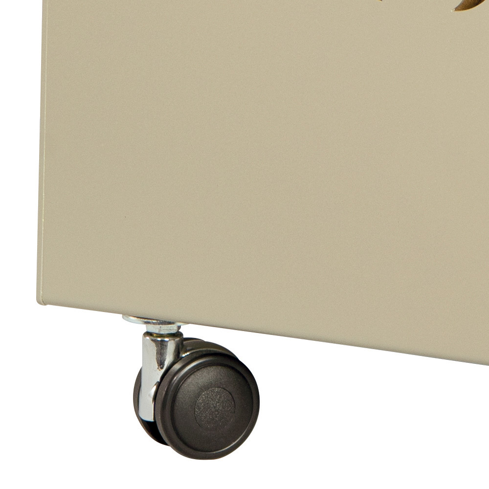 Su robusta estructura metálica garantiza durabilidad y estabilidad , mientras que sus ruedas resistentes y fáciles de manejar permiten mover el carrito con facilidad por toda la casa, desde el leñero hasta la chimenea. El diseño calado en el frontal no solo es un detalle decorativo que evoca la calidez y el confort del fuego, sino que también sirve para ventilar y mantener la leña seca.