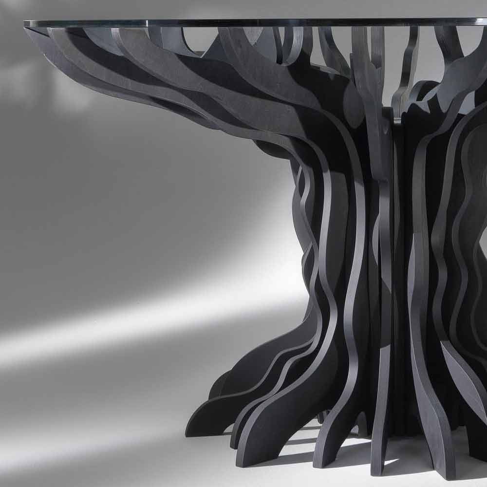 Tabla diseño moderno de madera contrachapada de abedul lacado mate negro. en clara tapa de cristal templado.
