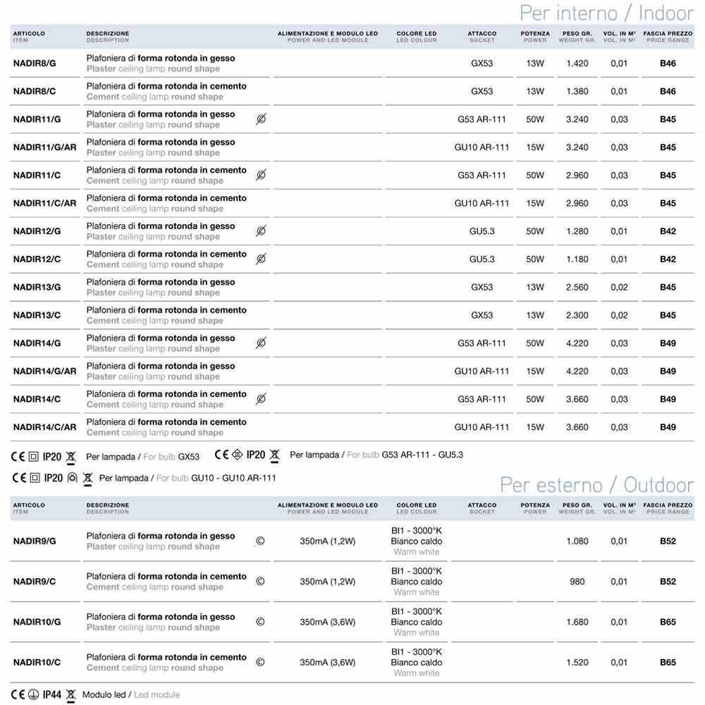 Plafón de diseño moderno Nadir 12 de Aldo Bernardi , disponible en versión hormigón o yeso.