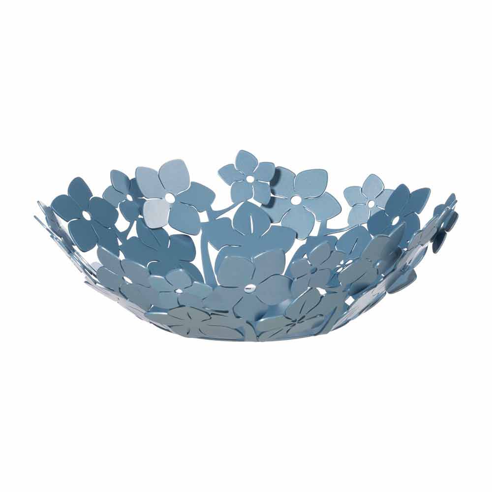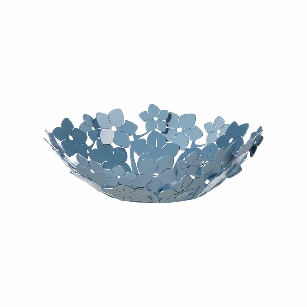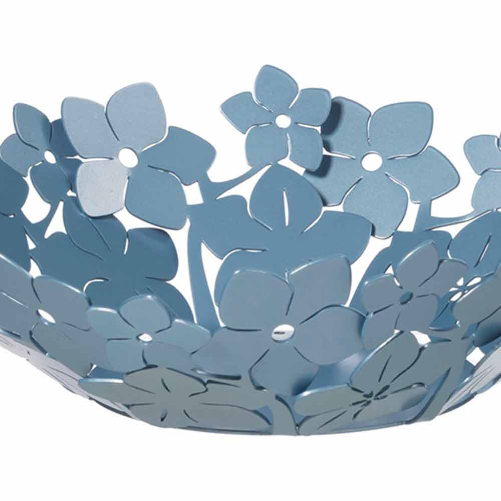 Centro de mesa con flores de estilo moderno, hecho a mano en Italia en hierro blanco, mármol, azul claro o barro.