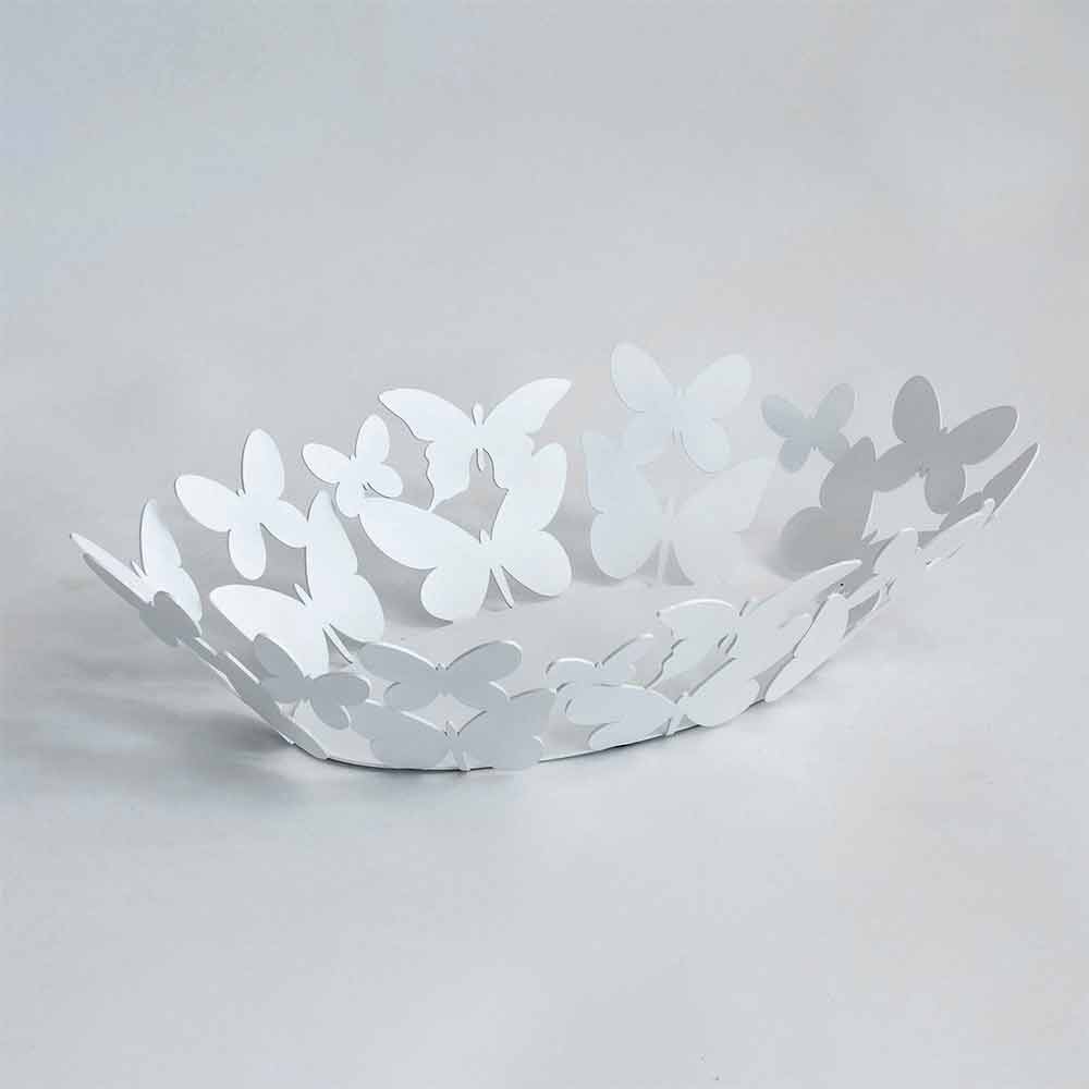 Centro de mesa moderno y ovalado hecho a mano en Italia en hierro blanco o beige.