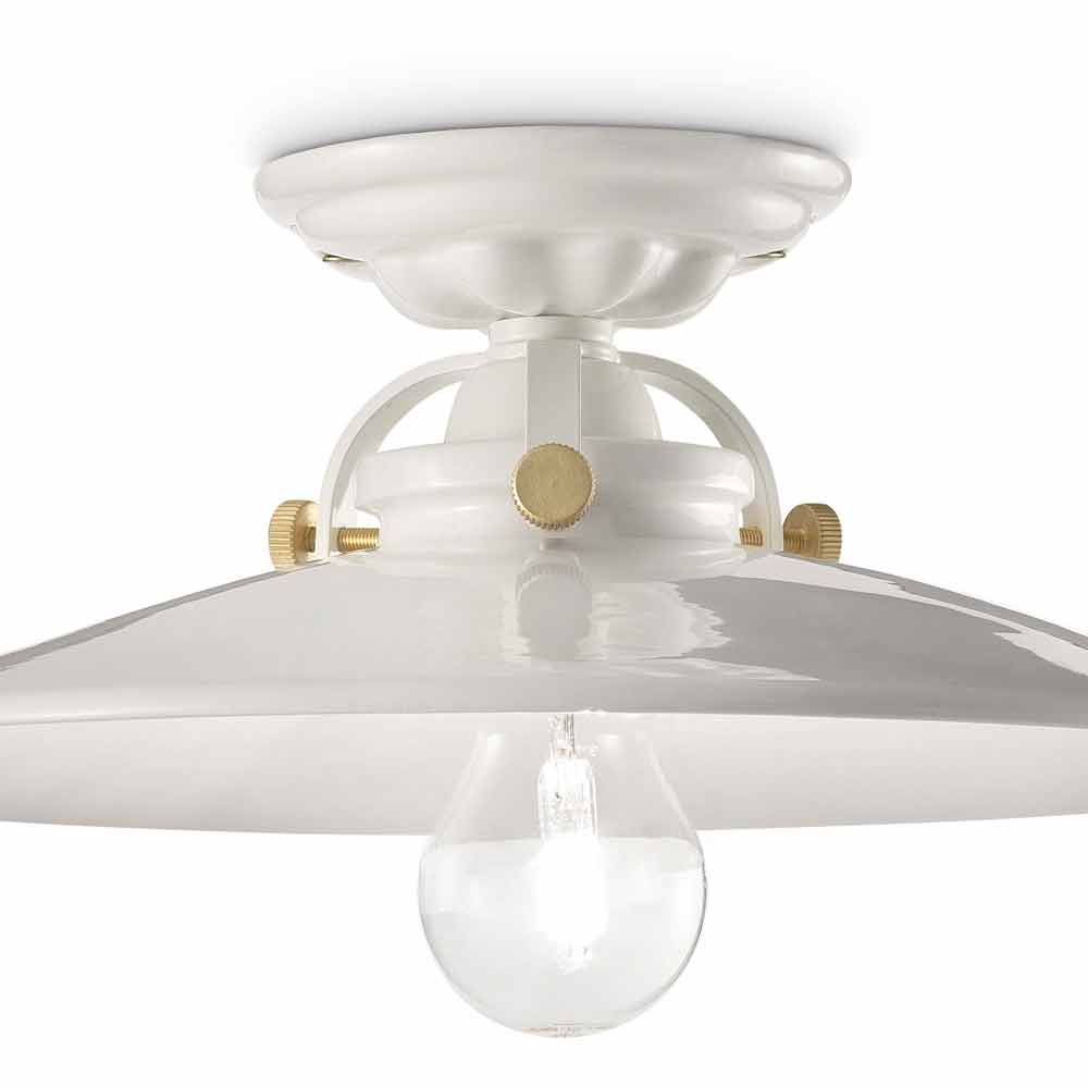 Plafón de diseño en cerámica y tornillos dorados Louise Ferroluce Louise es una lámpara de techo fantástica, hecha a mano por expertos artesanos en Italia. Lámpara realizada en cerámica, disponible en dos acabados diferentes: negro brillo o blanco brillo. La peculiaridad de esta hermosa lámpara de techo está contenida en su forma y diseño. Dotada de un estilo único y original, Louise trae consigo un estilo vintage-industrial reinterpretado, y es capaz de adaptarse a cualquier mueble, desde el más sencillo y minimalista, hasta el más clásico, creando un delicado contraste; todo esto es posible gracias a sus superficies simples, lineales y sin adornos. Los colores claros y las superficies brillantes determinan el perfil de esta fantástica lámpara de techo. Louise tiene un diseño actual, pero conserva el recuerdo de un estilo pasado. Completo con tornillos de soporte que se han convertido en un detalle precioso gracias a su acabado dorado, que resalta su presencia y función. ¡Dale un toque de diseño también a tu hogar! Lámpara disponible en diferentes acabados. ¡Consulta la carta de colores e introduce el código del acabado que deseas en la casilla correspondiente!