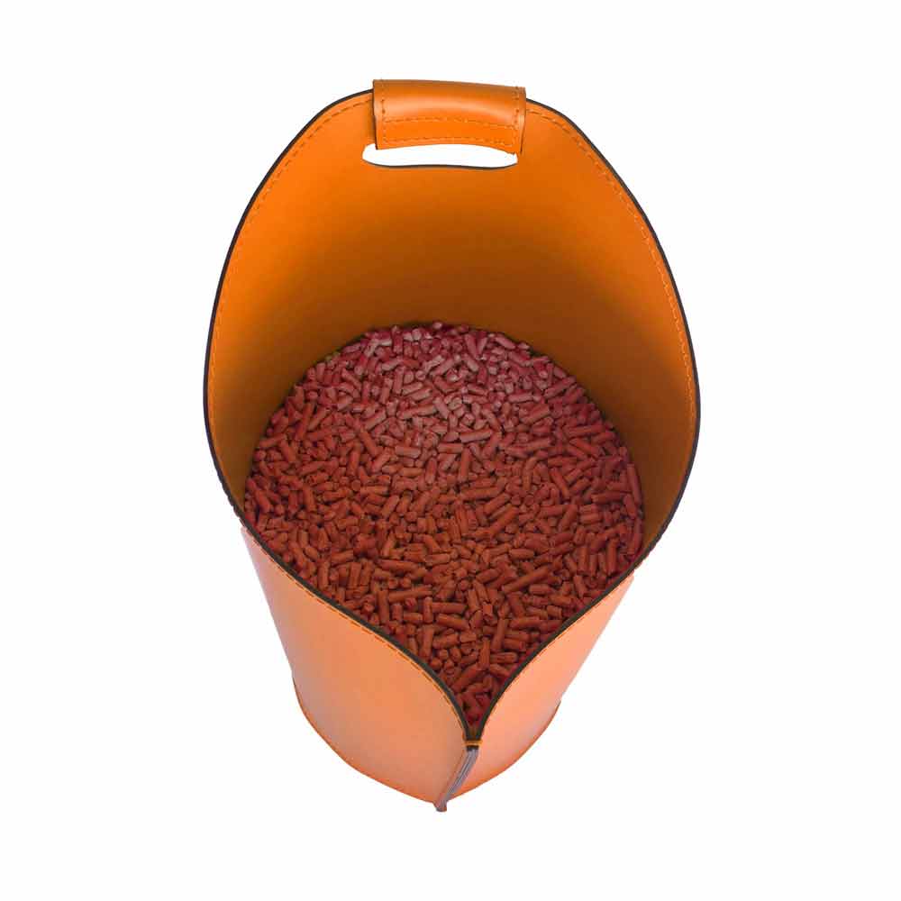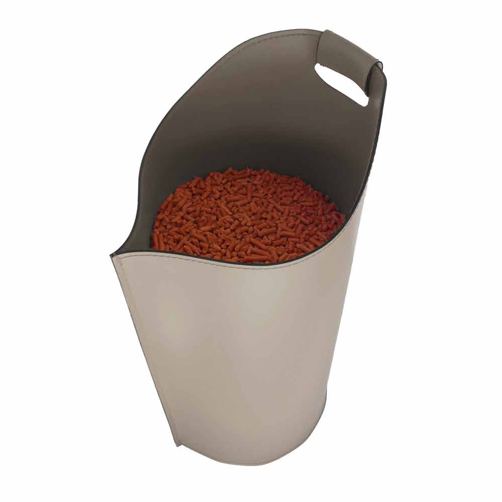 Cesta de diseño porta pellet 15 kg de cuero modelo Sapel