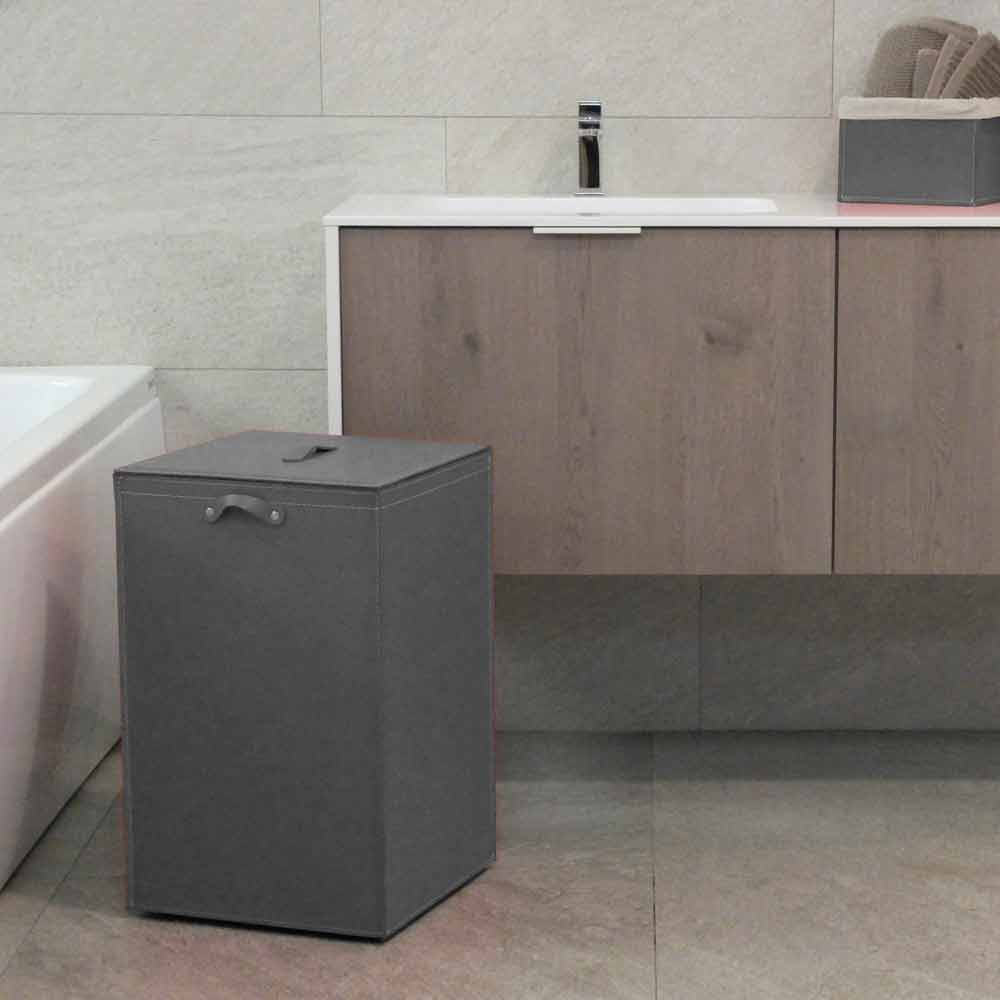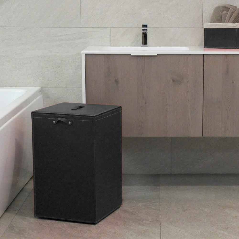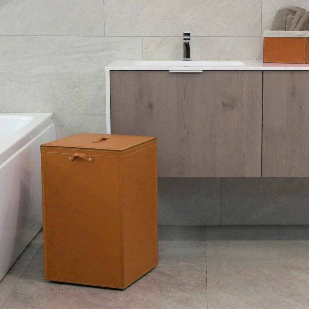 Cesto para la ropa de cuero con base cuadrada David, hecho en Italia