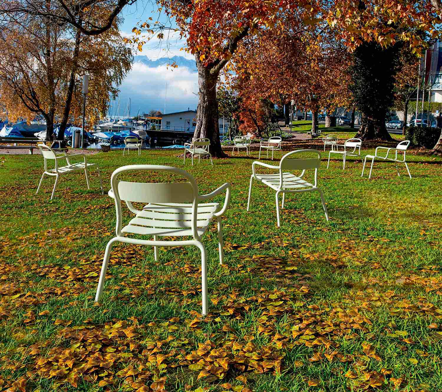 Silla en aluminio pintado para exteriores Made Hecho en Italia.