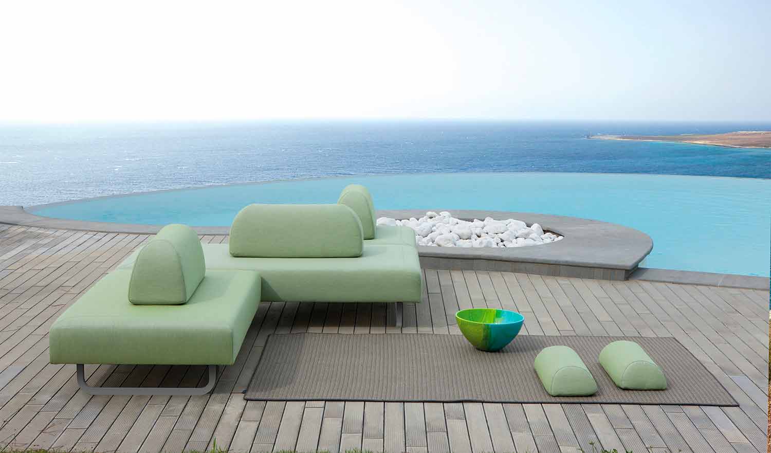 Su estructura interna es de madera resistente e incluye un acolchado sellado con tejido exterior 100 % acrílico teñido, utilizado precisamente por su