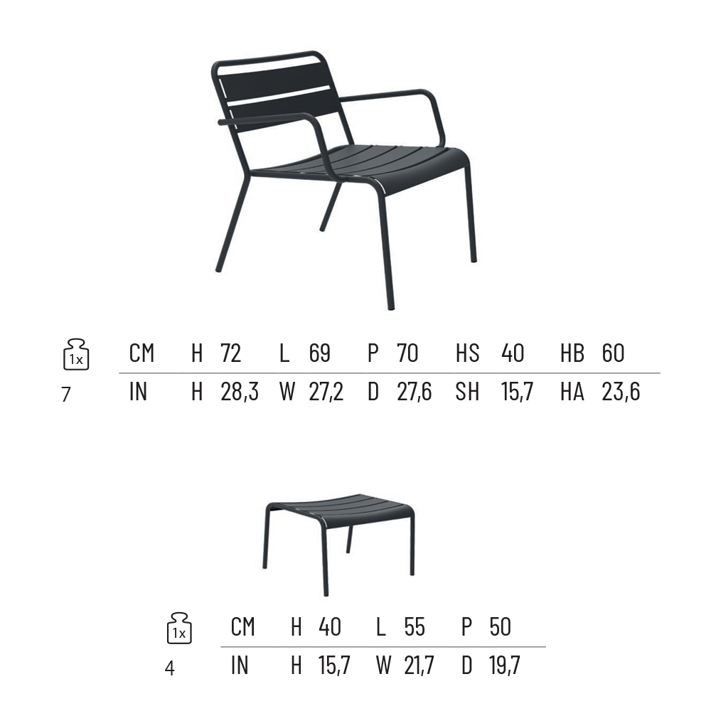 - Chaise longue : L 69 x P 70 x H 72 cm;