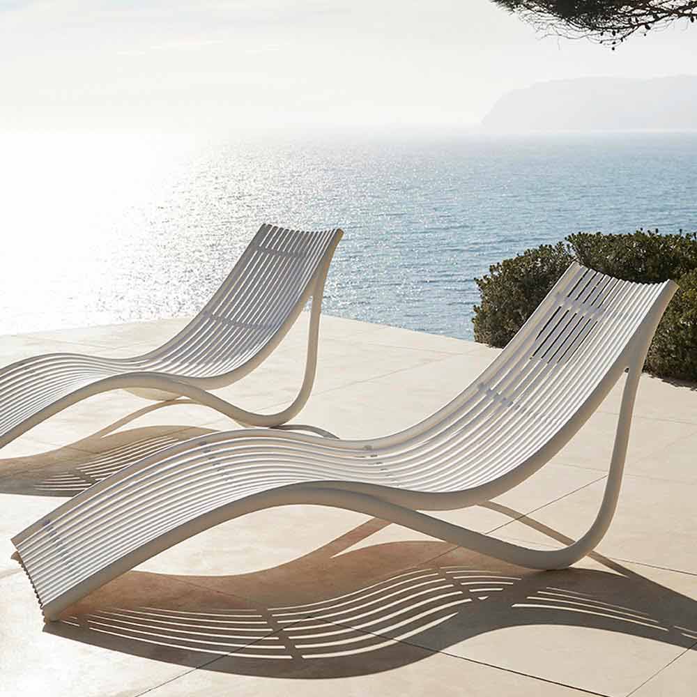 tumbona para el jardín se caracteriza por sus formas onduladas monobloque que recuerdan al mar y ofrecen un