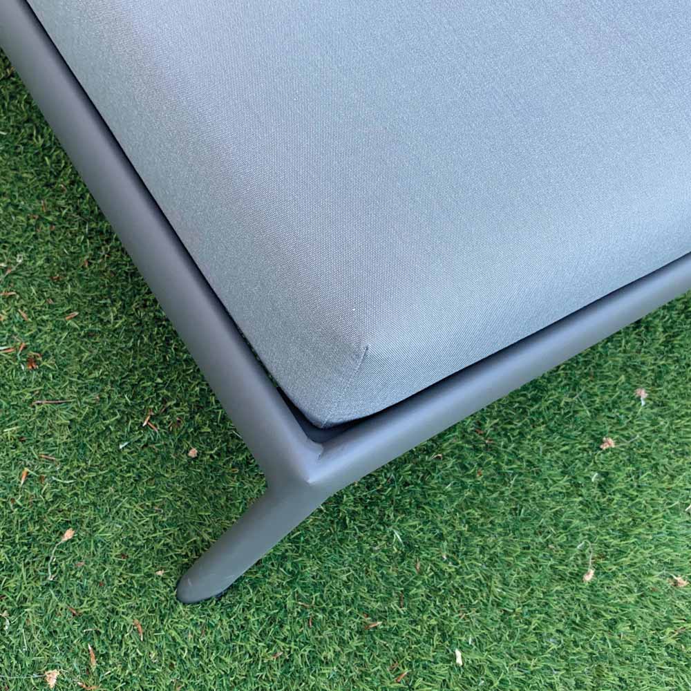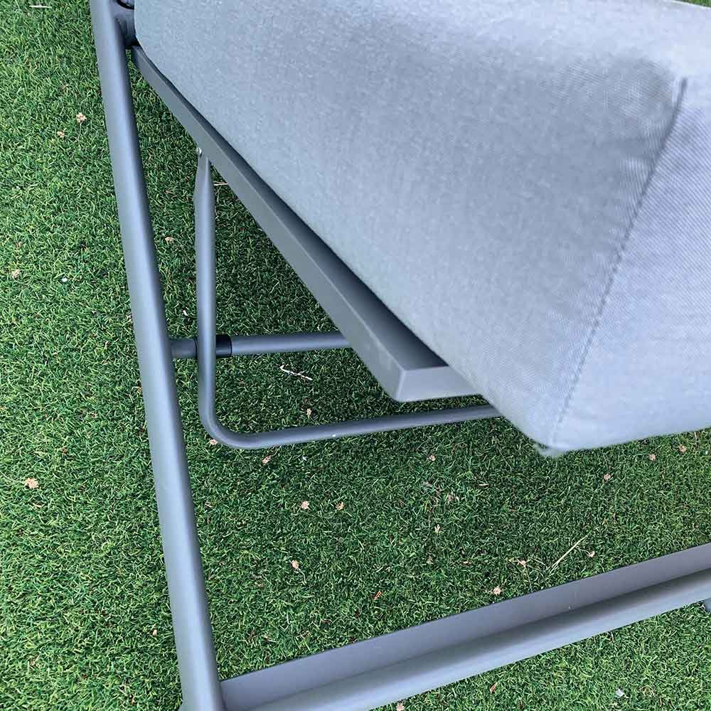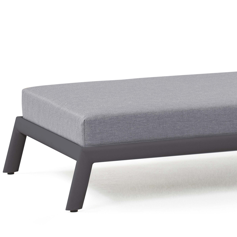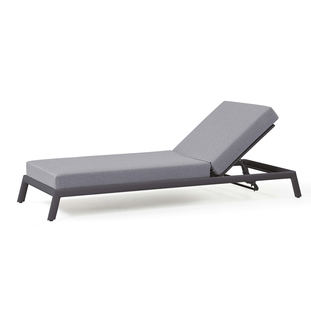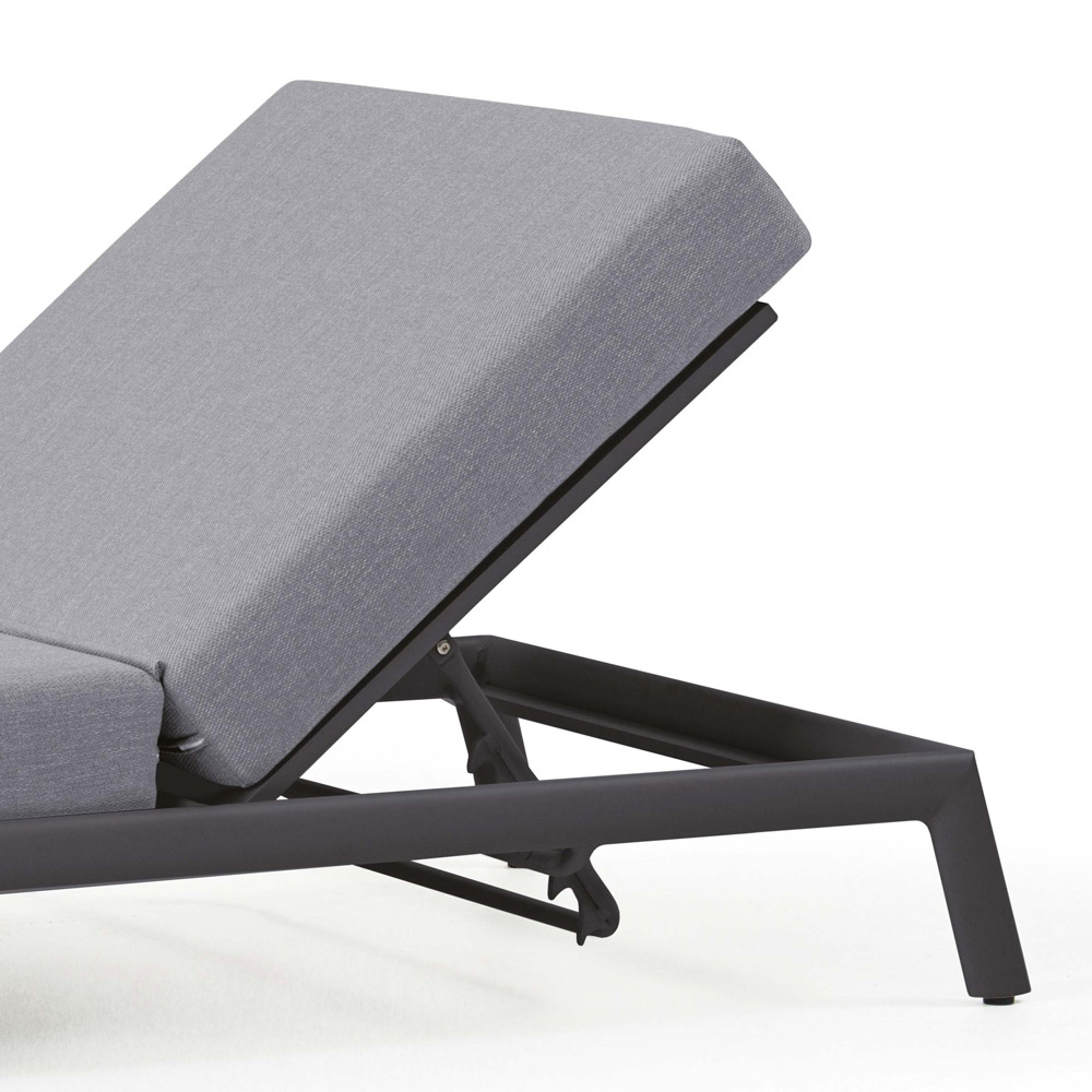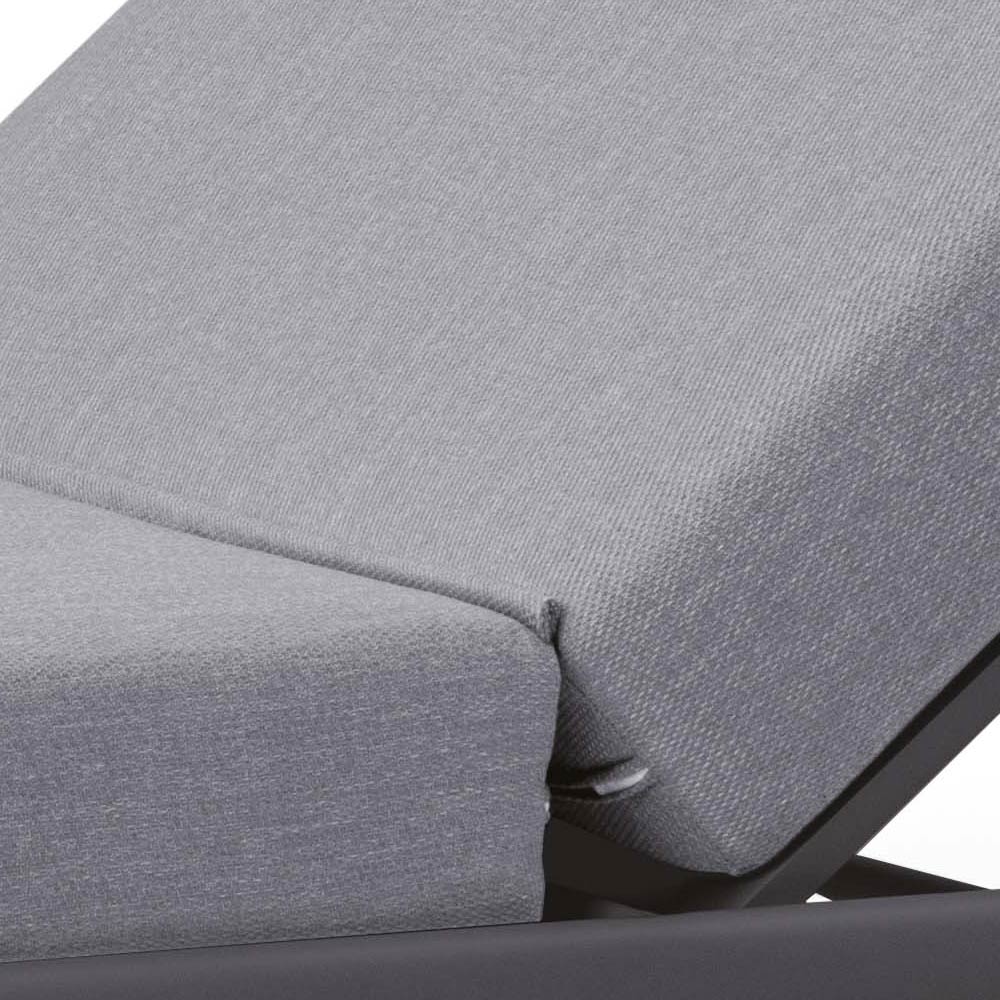 Chaise longue de jardín con estructura interior de aluminio pintado antracita con revestimiento de goma espuma de secado rápido y tejido sombrilla gris cielo.