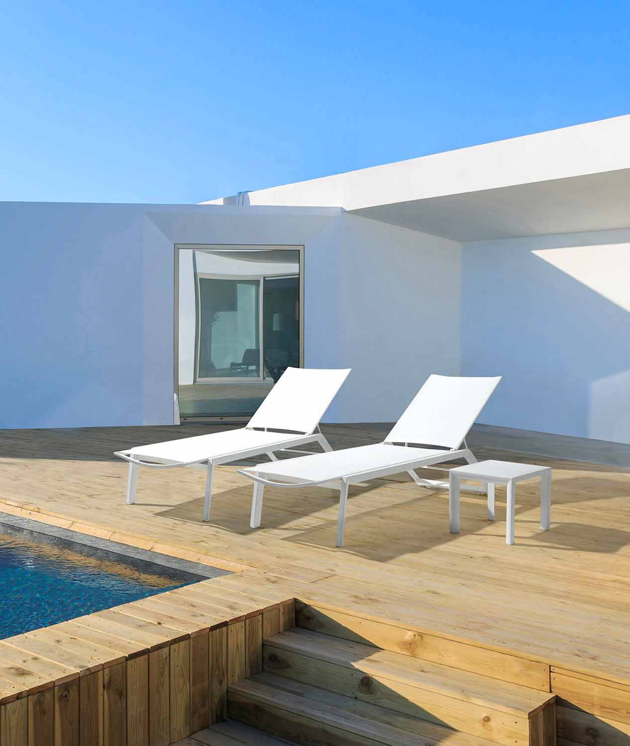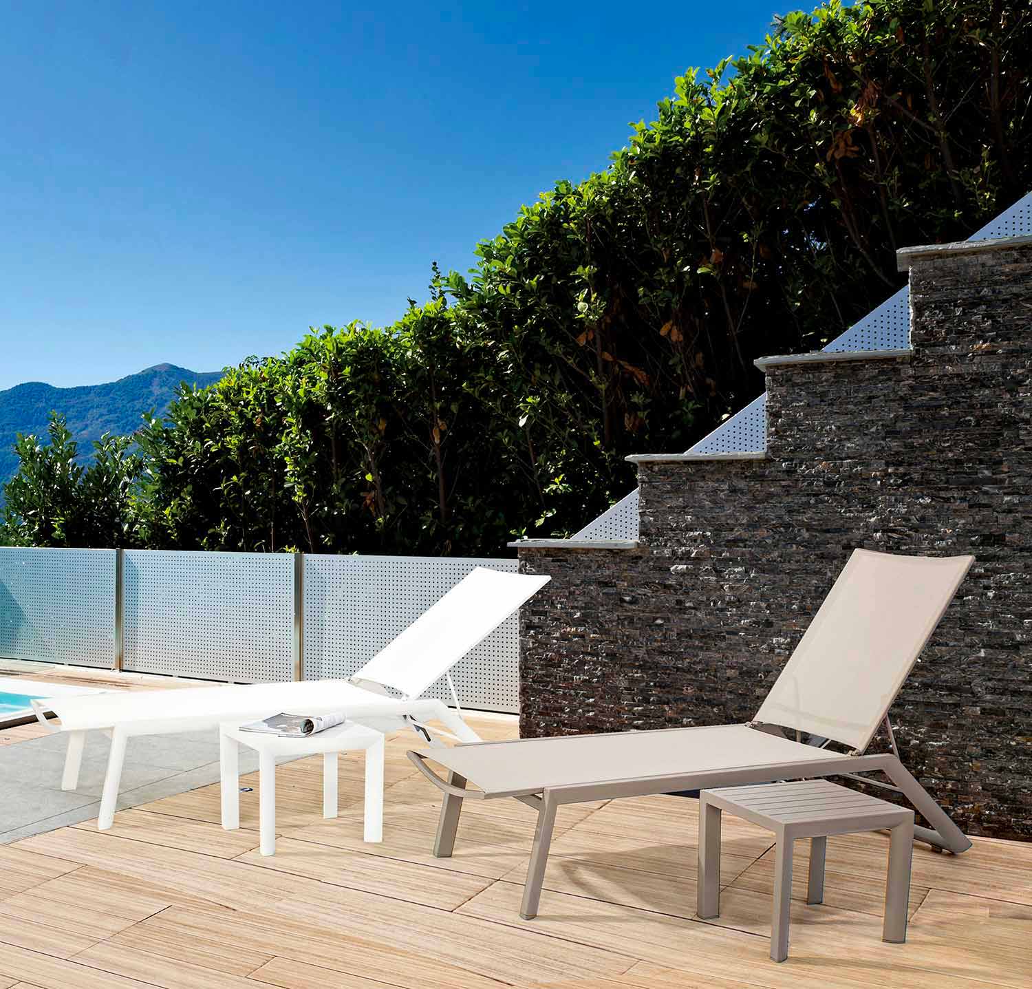 Cama de jardín con ruedas, reclinable con estructura de aluminio y asiento en textilene blanco o antracita.