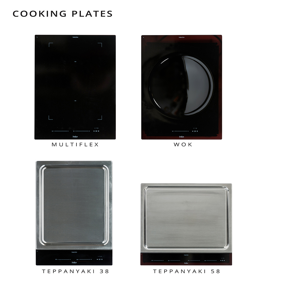 TEPPANYAKI 38: tecnología de inducción de última generación - toque de bloqueo - función Stop & go - 2 zonas de cocción independientes controladas termostáticamente (delantera y trasera) - cada una de 1400 W - control deslizante táctil con acceso directo a cada uno de los 10 niveles de calentamiento: 0-9 / nivel de limpieza - visualización dinámica de la temperatura para ambas zonas de cocción - toques de limpieza dedicados a cada zona