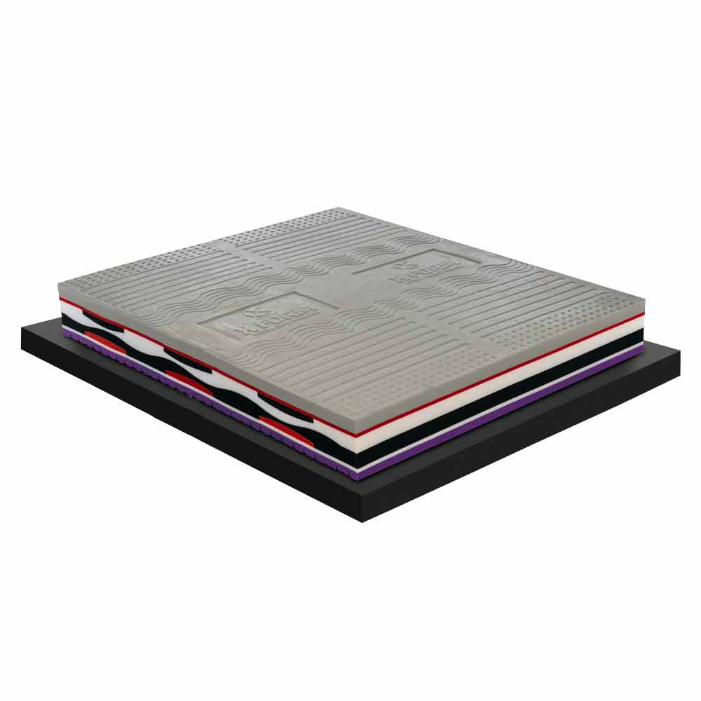 • 1,5 cm densidad 25 kg/m3 blanco + 3,5 cm densidad 40 kg/m3 espuma violeta.