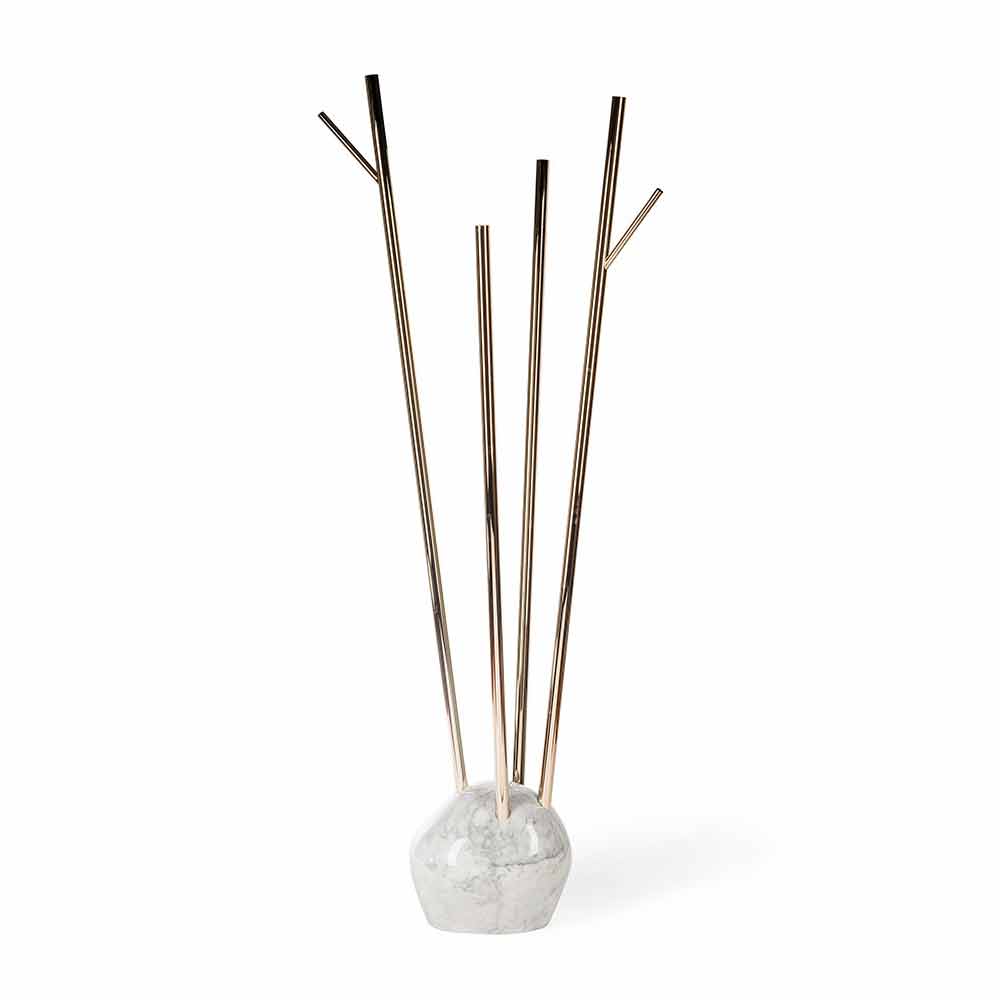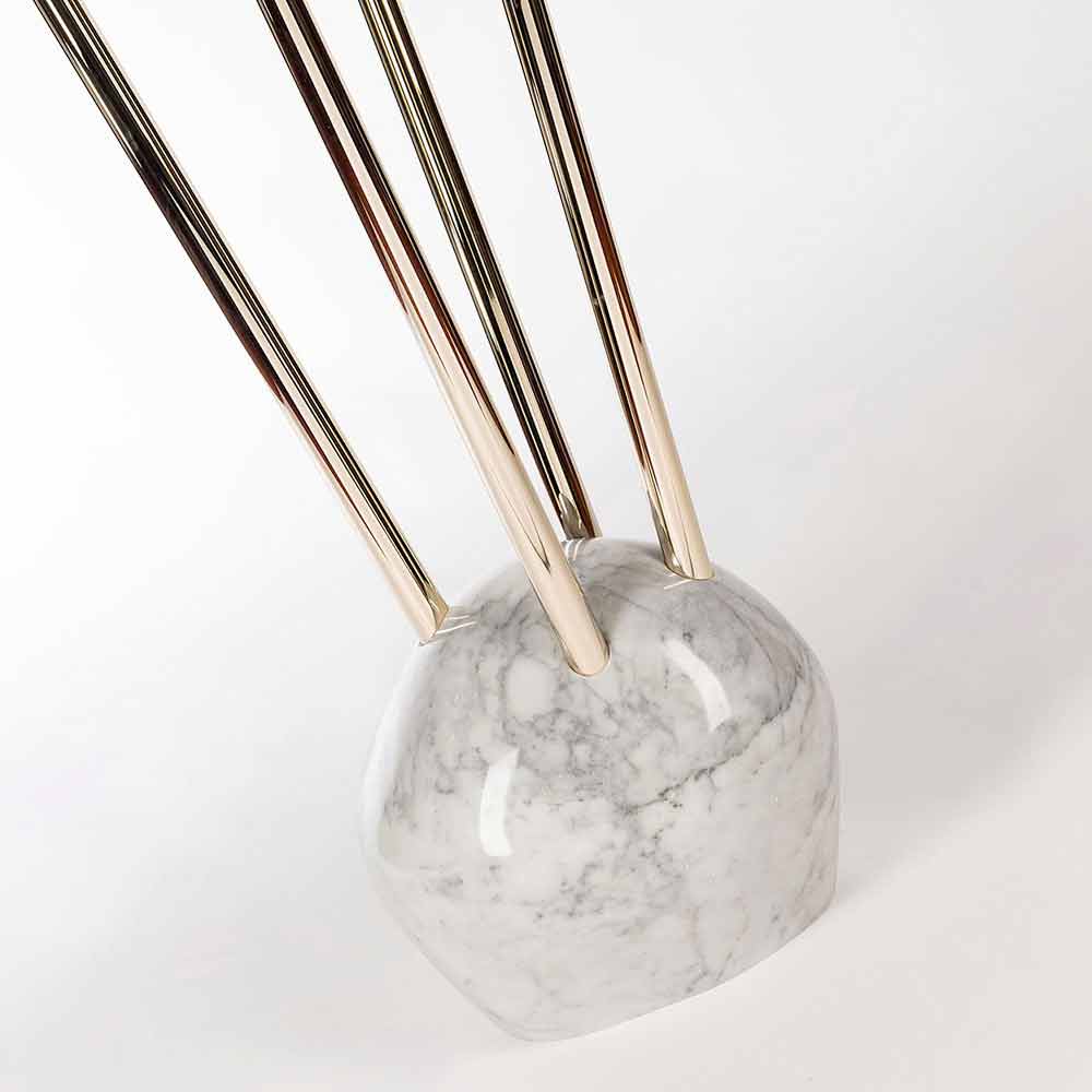 Escudo de pie con la base de mármol blanco de Carrara y tallos pulido 24 kt de metal chapado en oro galvanizado.