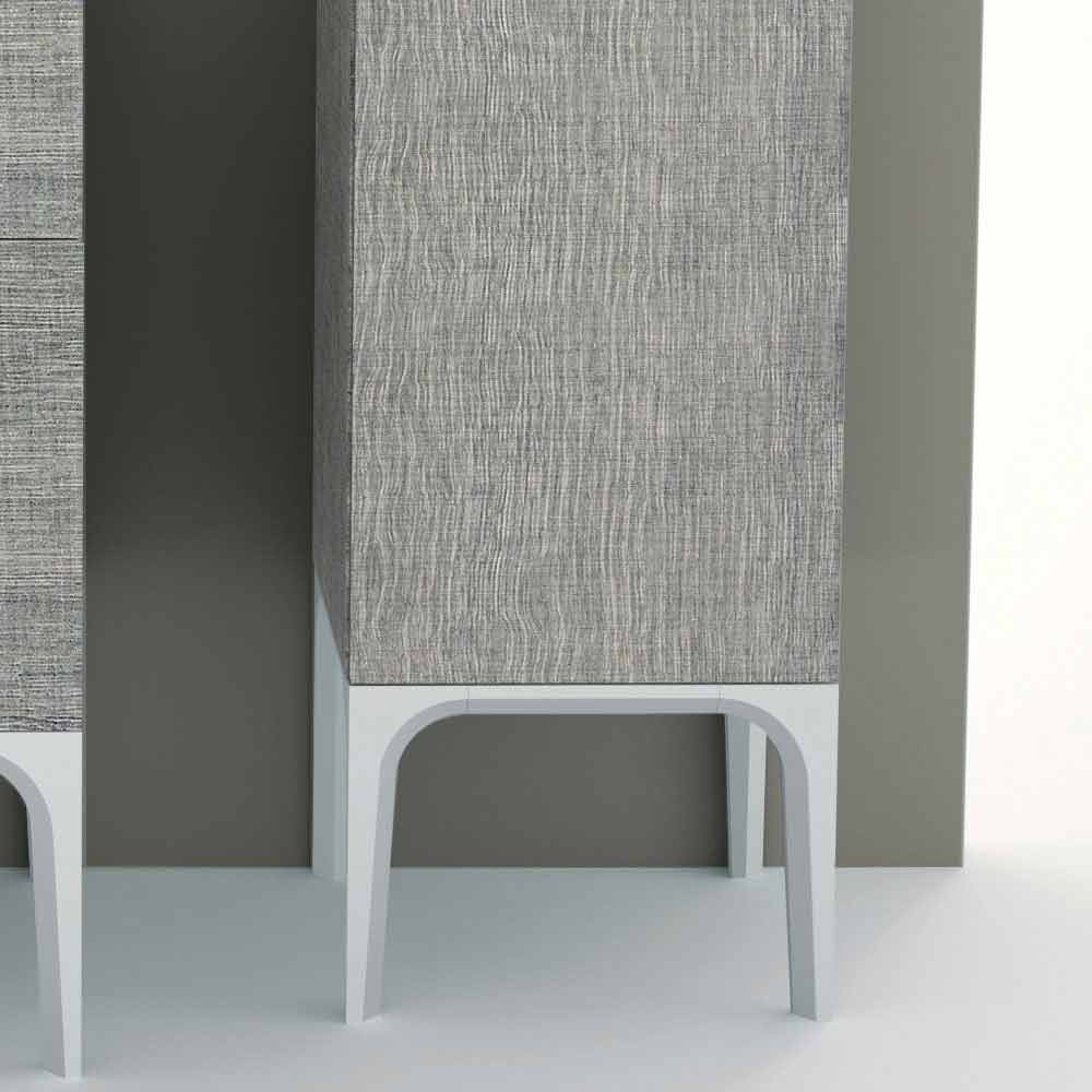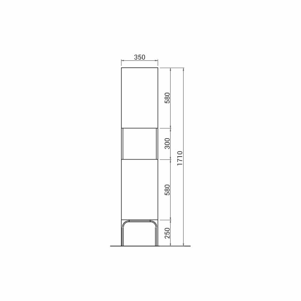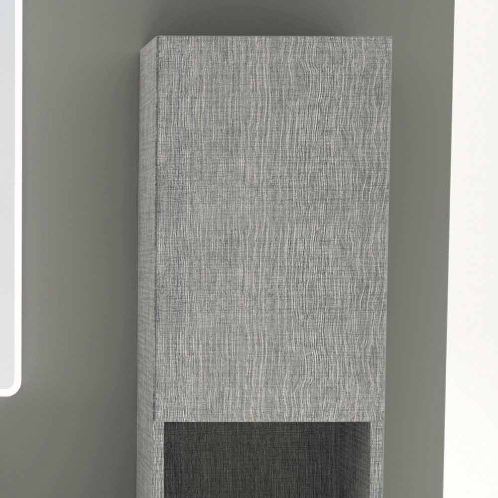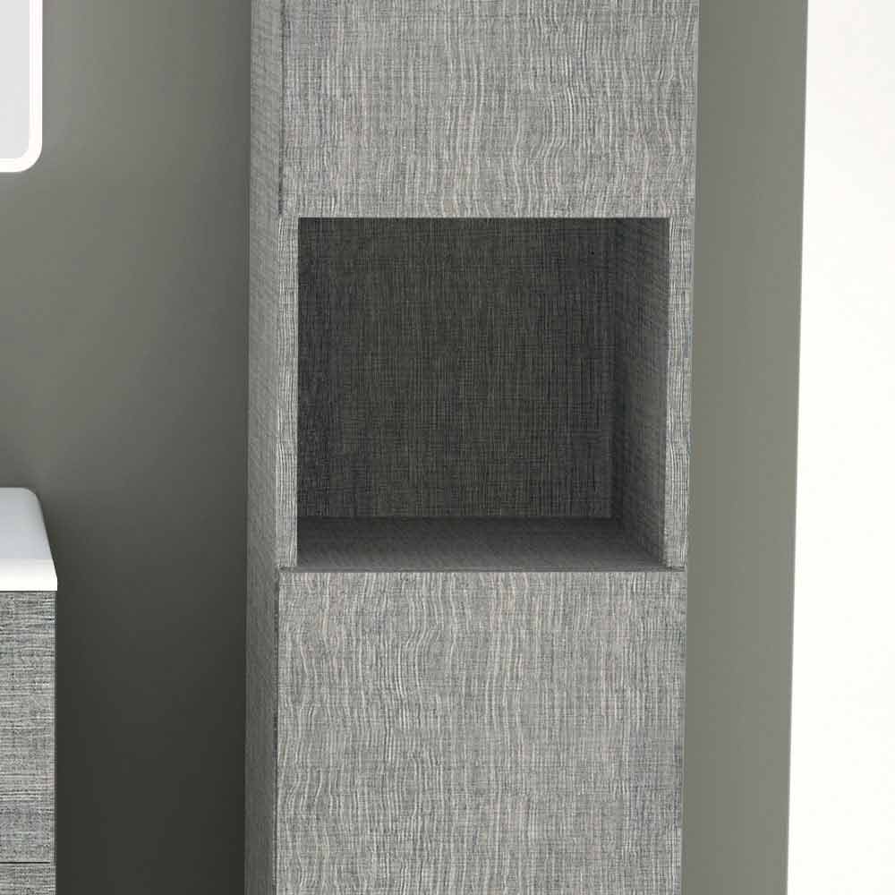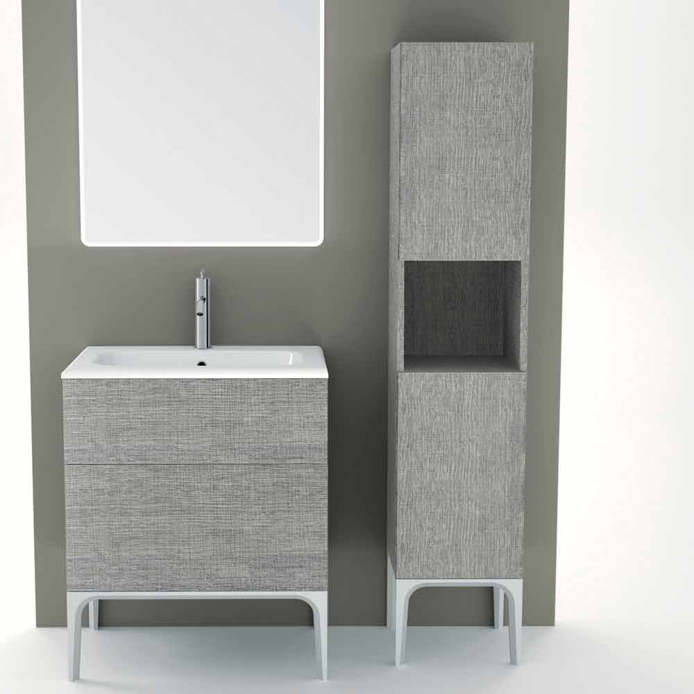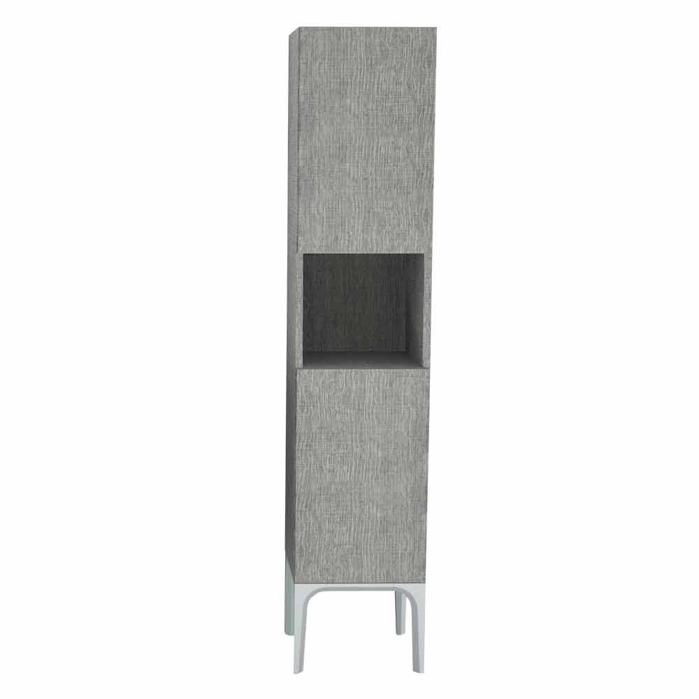 Mueble de baño columna con 2 puertas y compartimento abierto de líneas sólidas y armoniosas, fabricado en eco-madera con pies en madera lacada. El diseño representa el indicador correcto entre la modernidad y la tradición.